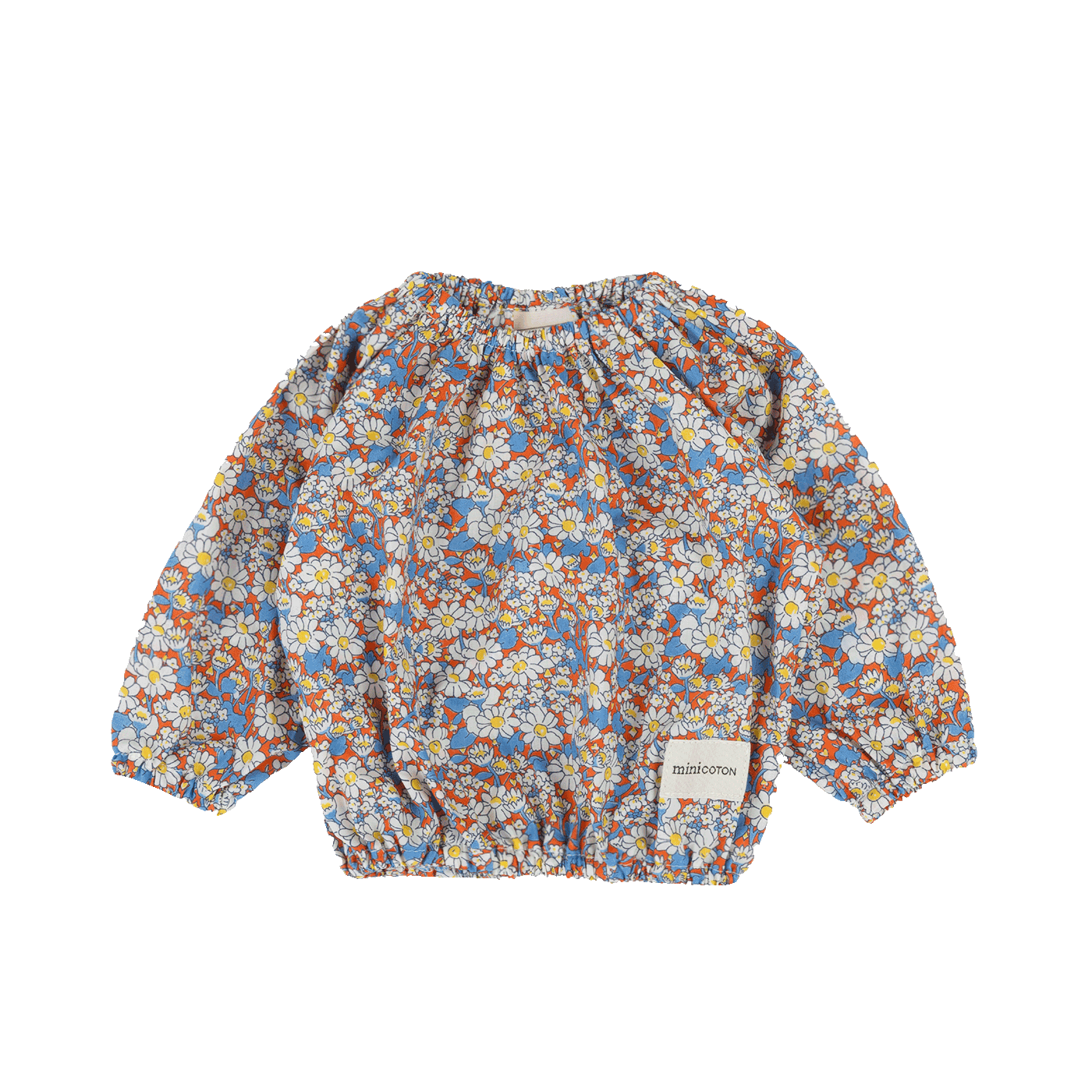 With soft elastics on cuffs, neck, and hem.