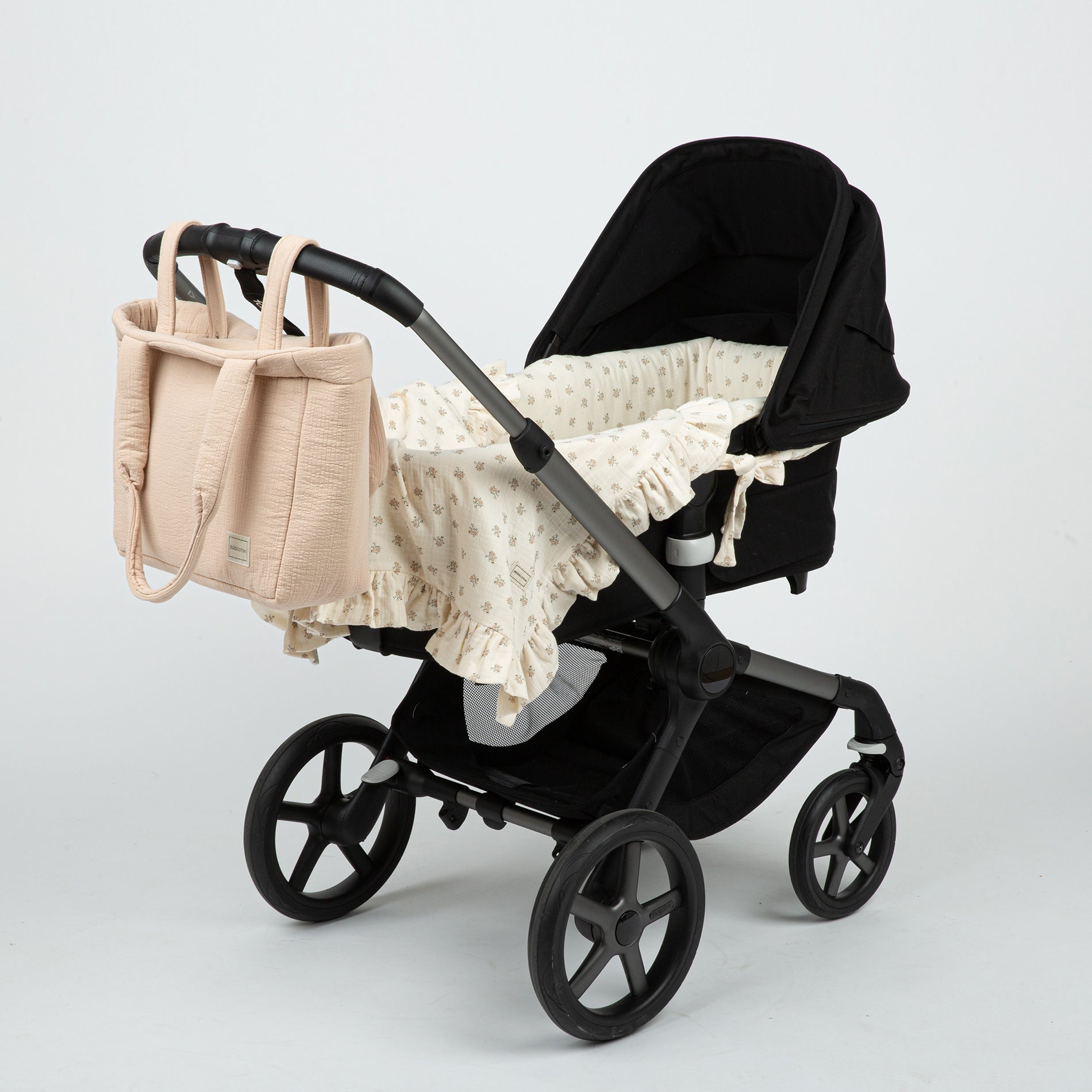 This is our carrycot cover for the Bugaboo Fox, Cameleon, and Donkey... Minimal, just as we love it. It fits integrated into the carrycot and adapts both with and without the foot cover, thanks to its side straps and elastic edge. It covers the entire carrycot and is placed under the mattress, so we recommend purchasing the fitted sheet to match (or mixing colors and patterns) to ensure the entire interior is dressed. To finish dressing the carrycot, the oval sleeping bag, a swaddle, or a muslin cloth is ideal… depending on your needs. Fabric made of 100% organic cotton gauze with Gots and Oeko-tex® certification.