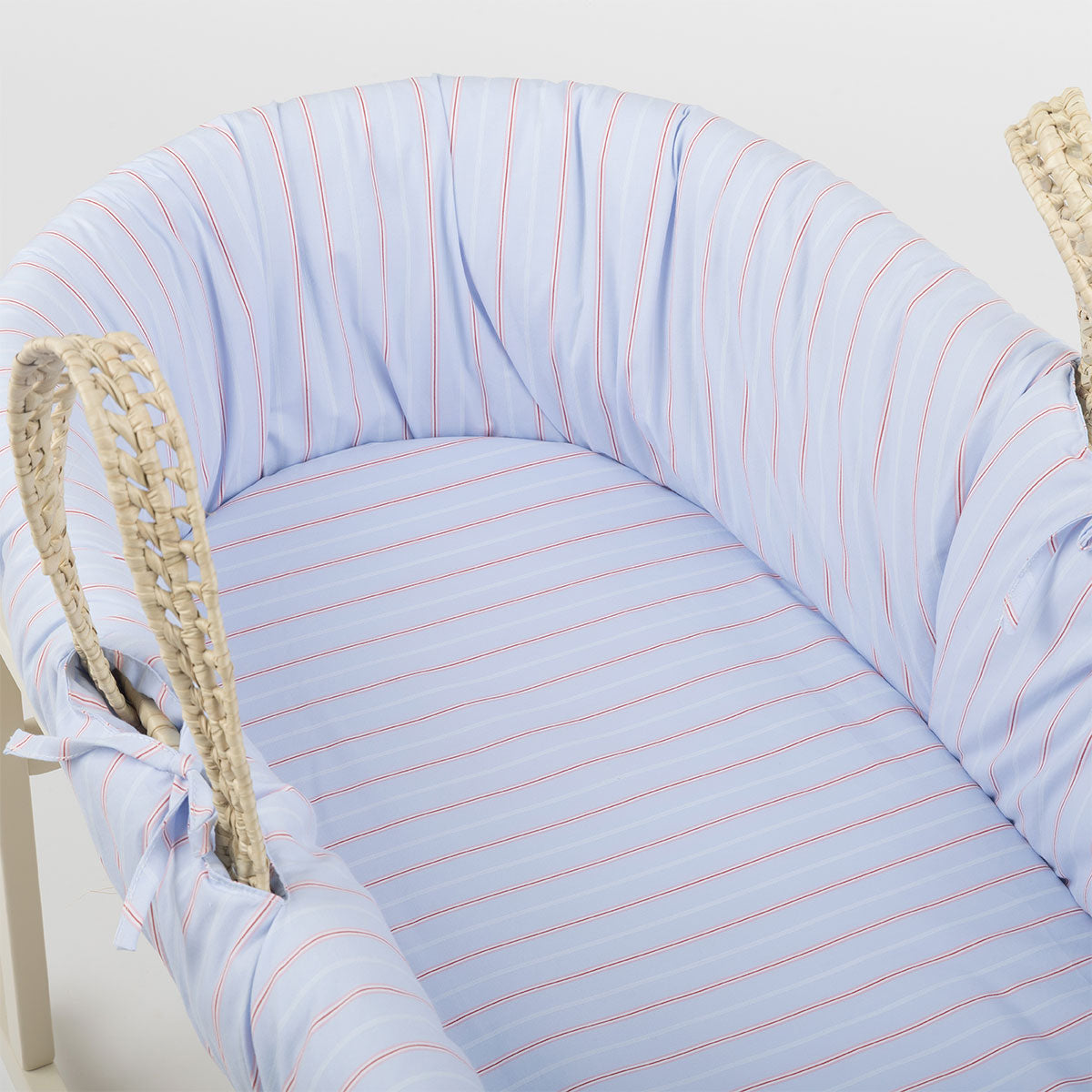 This is our carrycot. Minimal. Its soft lining will make the baby feel like they're on cloud nine. Ideal to pair with our oval sleeping bags, swaddles, or blankets. Very practical for the first months of life. Babies feel comfortable and snug, helping them rest better.