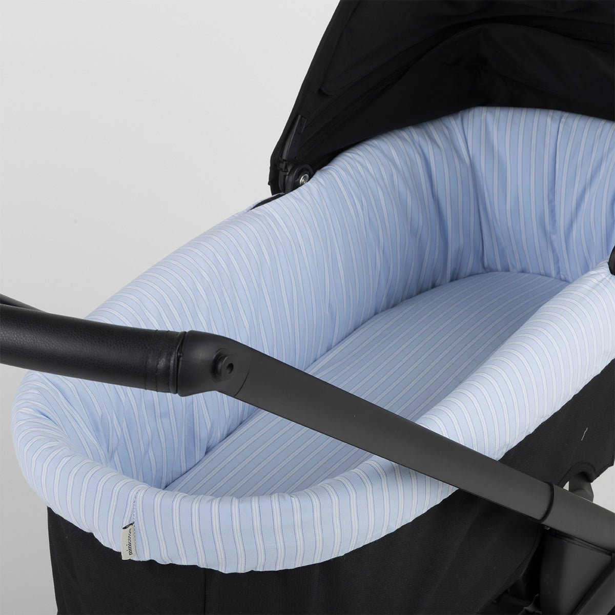 It fits integrated into the carrycot and adapts both with and without the foot cover, thanks to its elastic edge. It covers the entire carrycot and is placed under the mattress, so we recommend purchasing the matching fitted sheet to ensure the entire interior is dressed. It is available in different colors and prints.