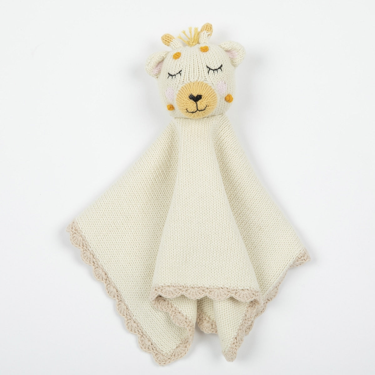 Sally. The giraffe made Dou Dou handcrafted with 100% organic PIMA cotton, Oeko-Tex 100 certified and filled with hypoallergenic recycled polyester. Non-toxic eco-friendly dyes. Suitable for sensitive skin.