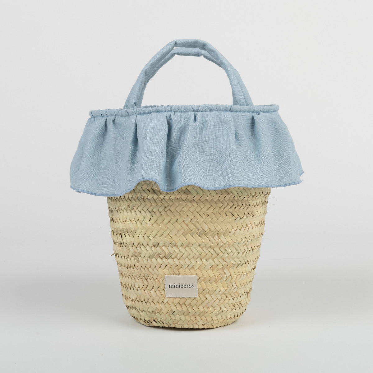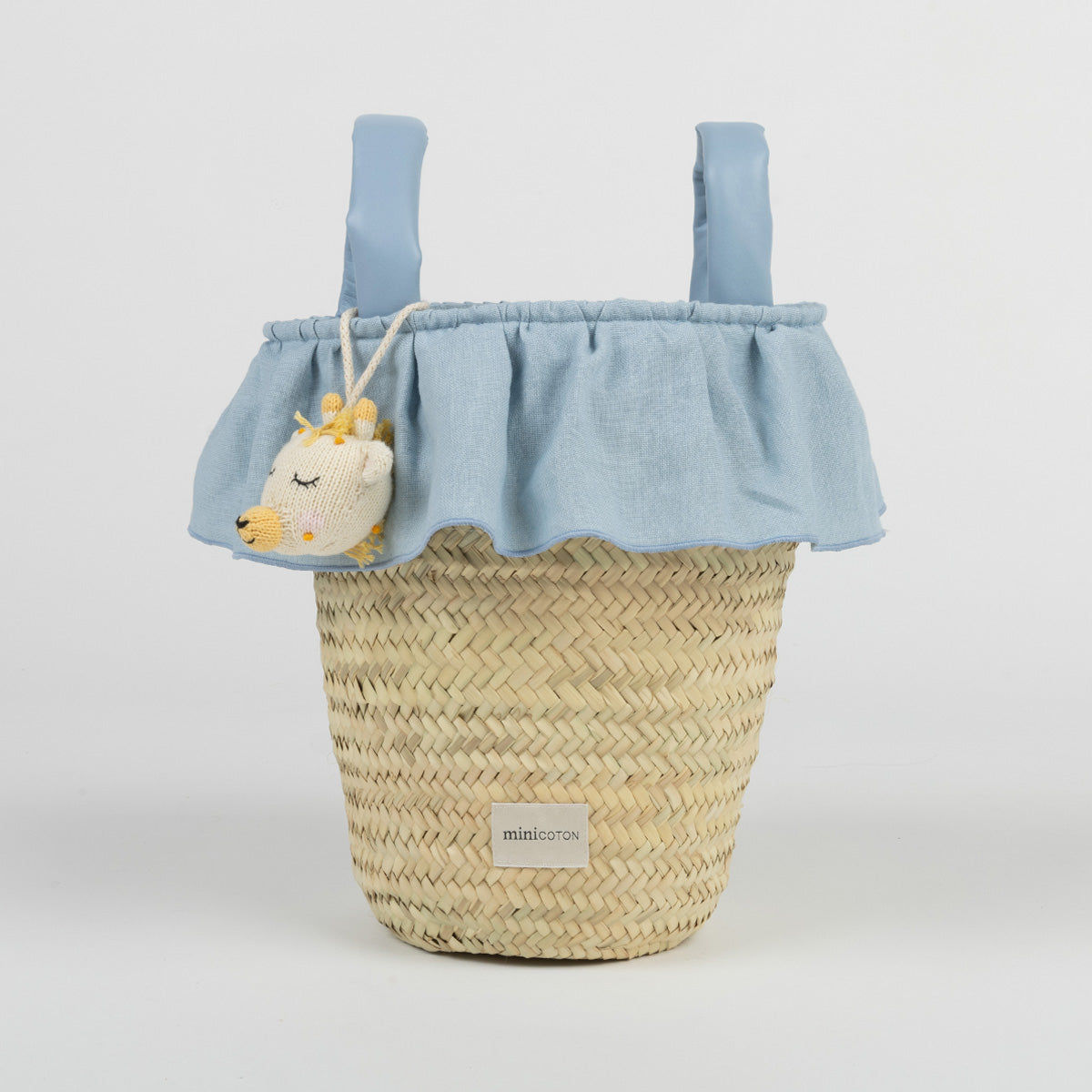 A very special bag because of its removable handles, which can be positioned in different ways to make it perfect as a handbag or stroller bag. With just two clicks, your bag changes shape to accompany you in the best way. It closes very practically with its cords at the top, like a snack bag. It has great capacity and its interior is made of water- and stain-repellent fabric, easy to clean with a damp cloth. The exterior is 100% linen and palm basket.