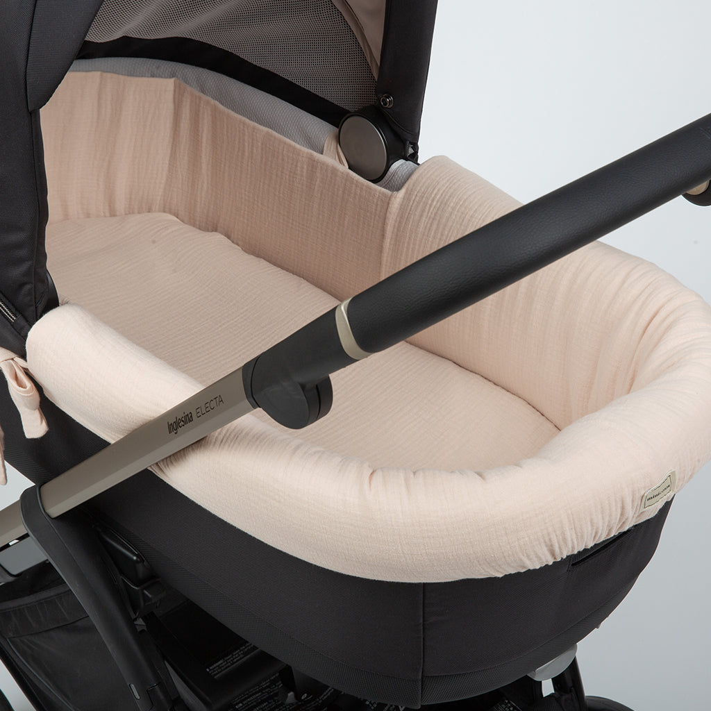 This is our cover for the Inglesina carrycot. It covers the entire carrycot and is placed under the mattress, so we recommend purchasing the fitted sheet to match or combining other colors or patterns to ensure the entire interior is dressed. It is available in different colors and patterns. To complete the carrycot's look, the oval sleeping bag, a swaddle, or a muslin cloth are ideal... depending on your needs.