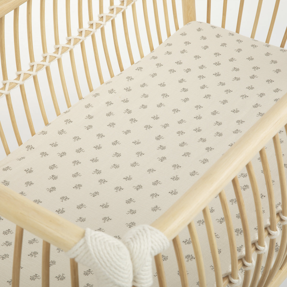 Includes Blossom Blue fitted sheet in 100% organic cotton with Gots and Oeko tex 100 certification.