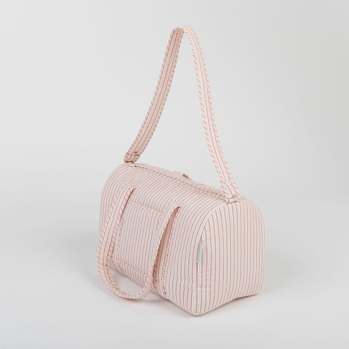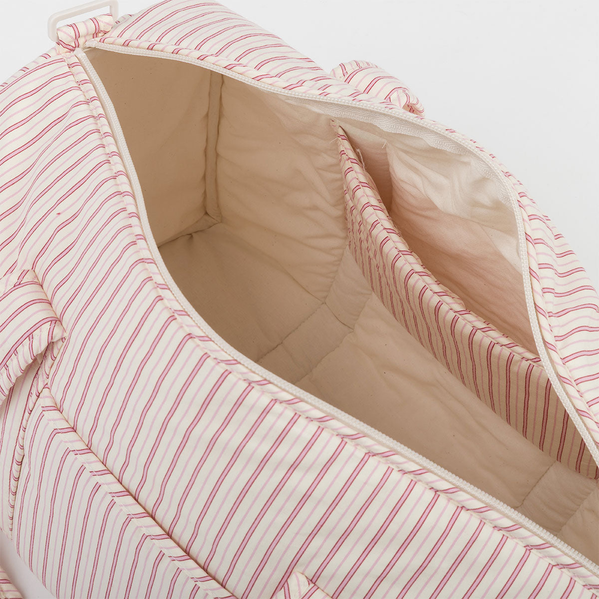 Our maternity bag is very practical and lightweight. Later it will be your weekend bag. It has two inner pockets and one outer pocket, it closes with a zipper. It has padded handles for comfortable shoulder carrying and a removable shoulder strap.