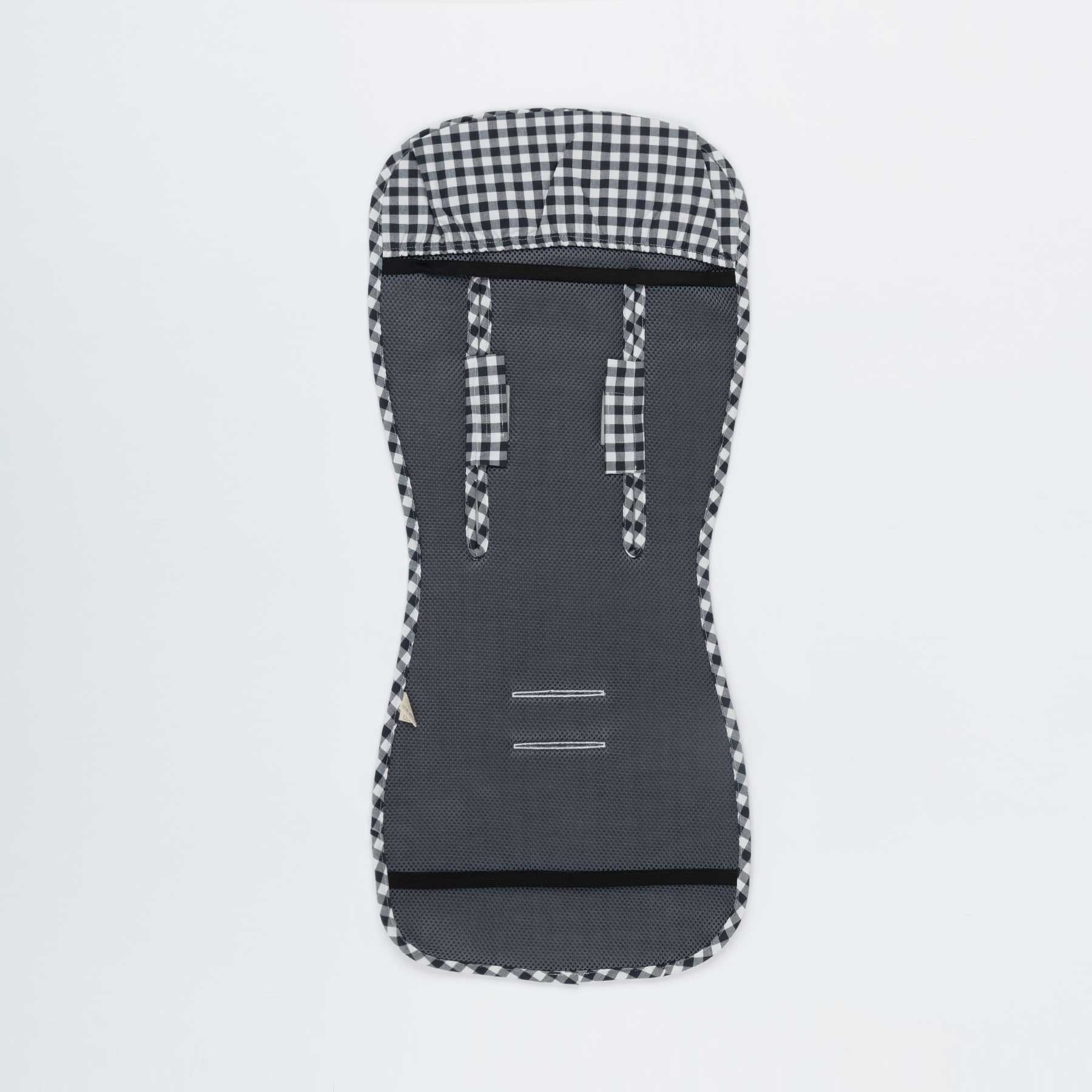 The back in 3D technical fabric makes it very breathable, as well as making the seat more comfortable. It can be washed with cold water and neutral liquid soap on a delicate cycle. Measurements: 84 x 36 cm.