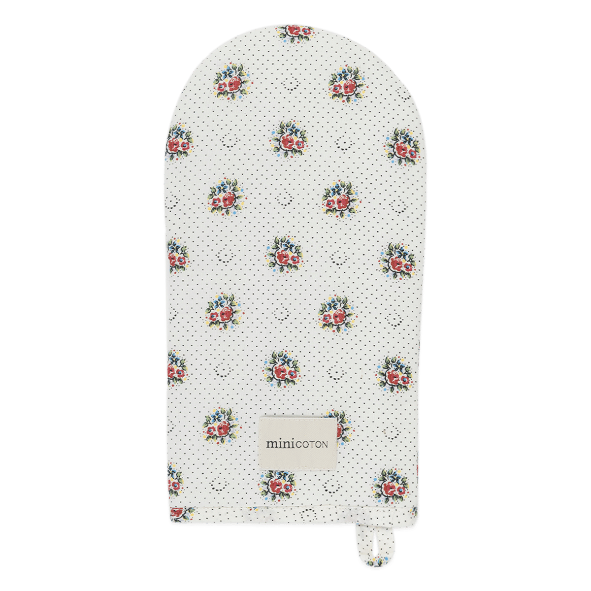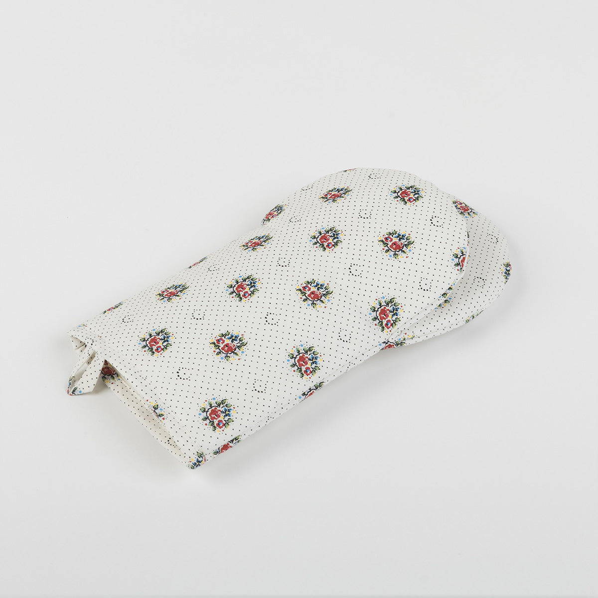Oven mitt made of 100% cotton fabric.