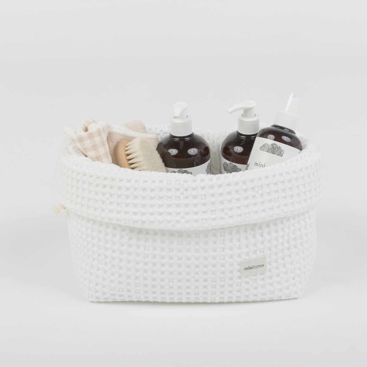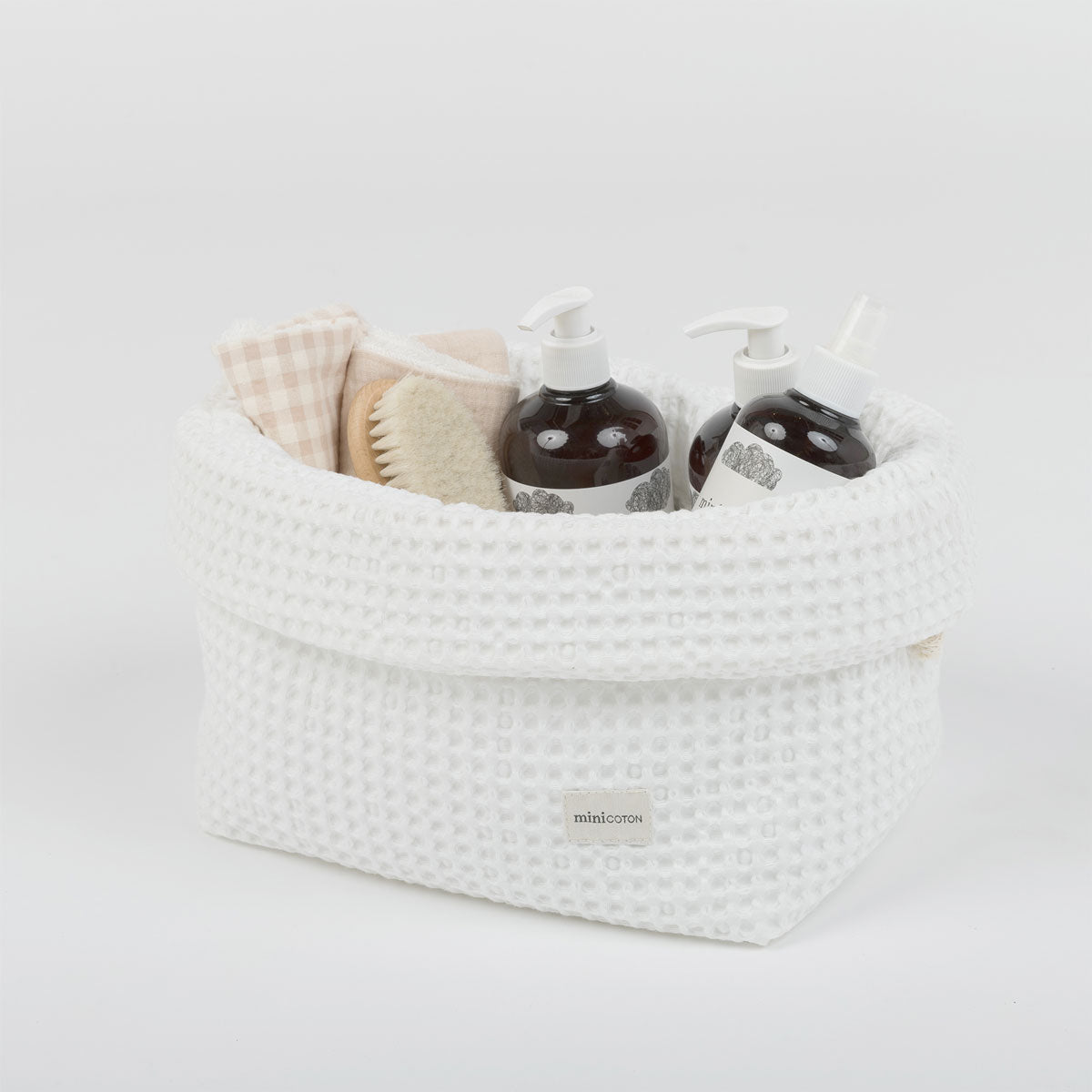 Ideal for keeping all the baby’s little things organized and within reach on the changing table.