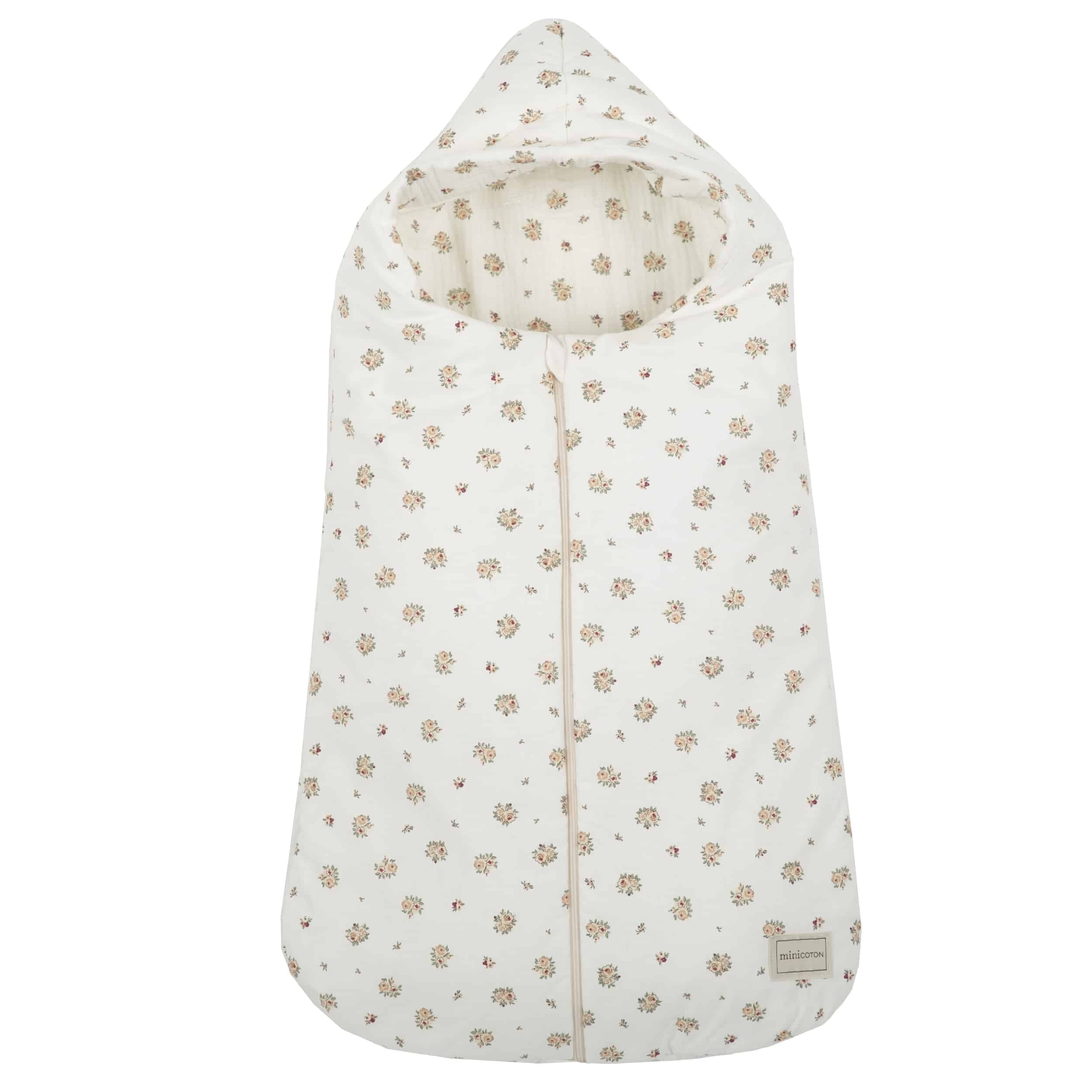 The oval sleeping bag is round and provides comfort to the baby, as it protects them from the wind and isolates them from noise by keeping their little head covered. It is very practical because, thanks to its front zipper, you can wrap and unwrap the baby without even waking them. All seams are hidden to ensure comfort, as are the materials chosen for its making: exterior and interior 100% organic cotton. It is a universal sleeping bag for all carrycots, prams, bassinets, cribs, and mini cribs. The filling is thin, feather-like, very soft and light. Ideal for mid-season and summer nights. Measurements: 77 x 42 cm.