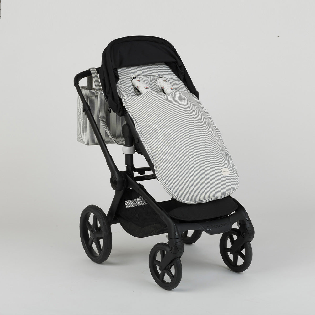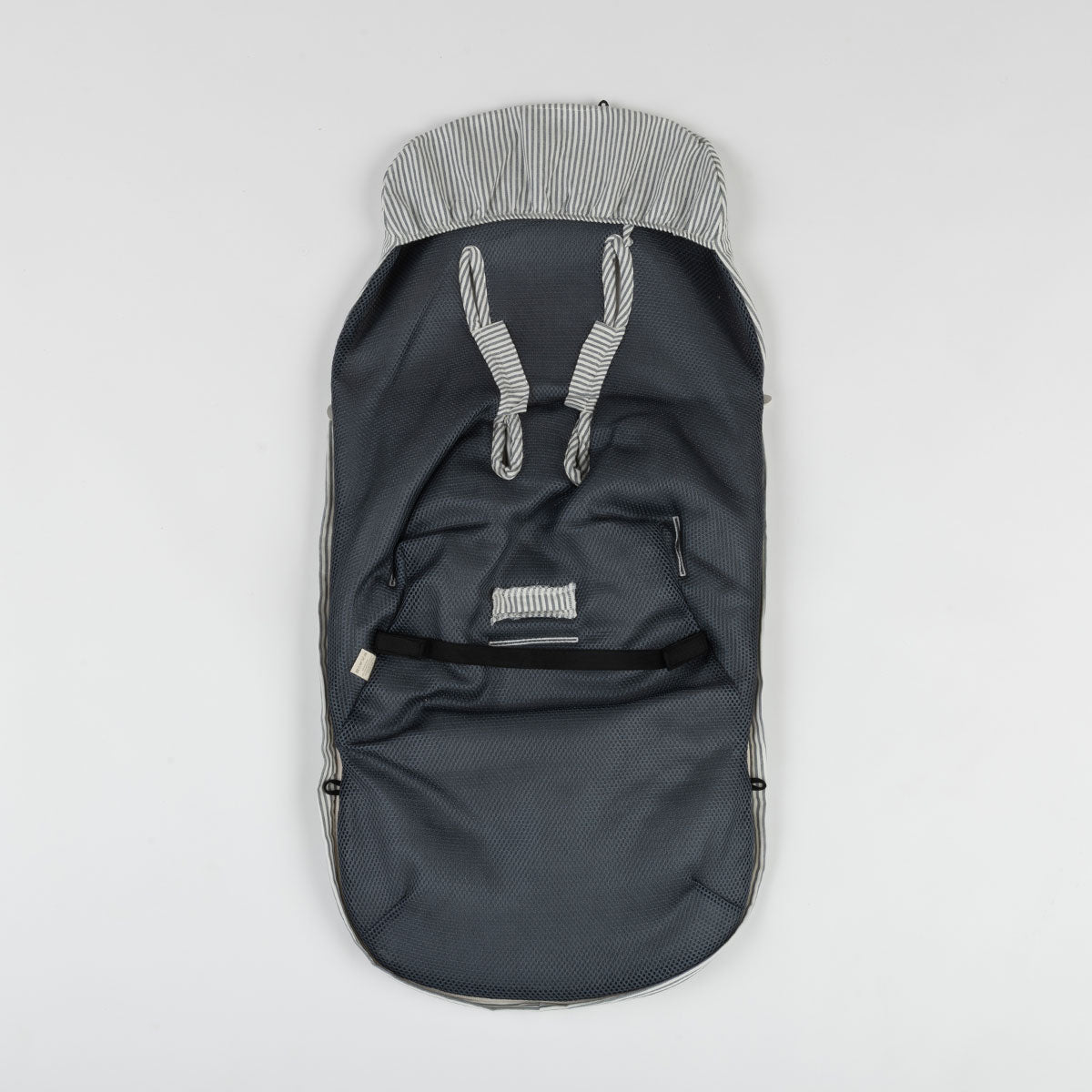 This is our universal sack for stroller. It consists of the seat cover, the sack, and its two fillings: one thin and another thicker with a down effect, light and fluffy. They can be used separately or both together depending on the needs. The sack is removable and all its parts can be separated; this way, it makes washing easier, as it is not necessary to wash it completely, only the parts that need it. The inner part of the sack is made of velvety cotton knit in gray marl, being soft to the touch and durable against rubbing. Outer fabric: 53% cotton and 47% Recycled Denim.