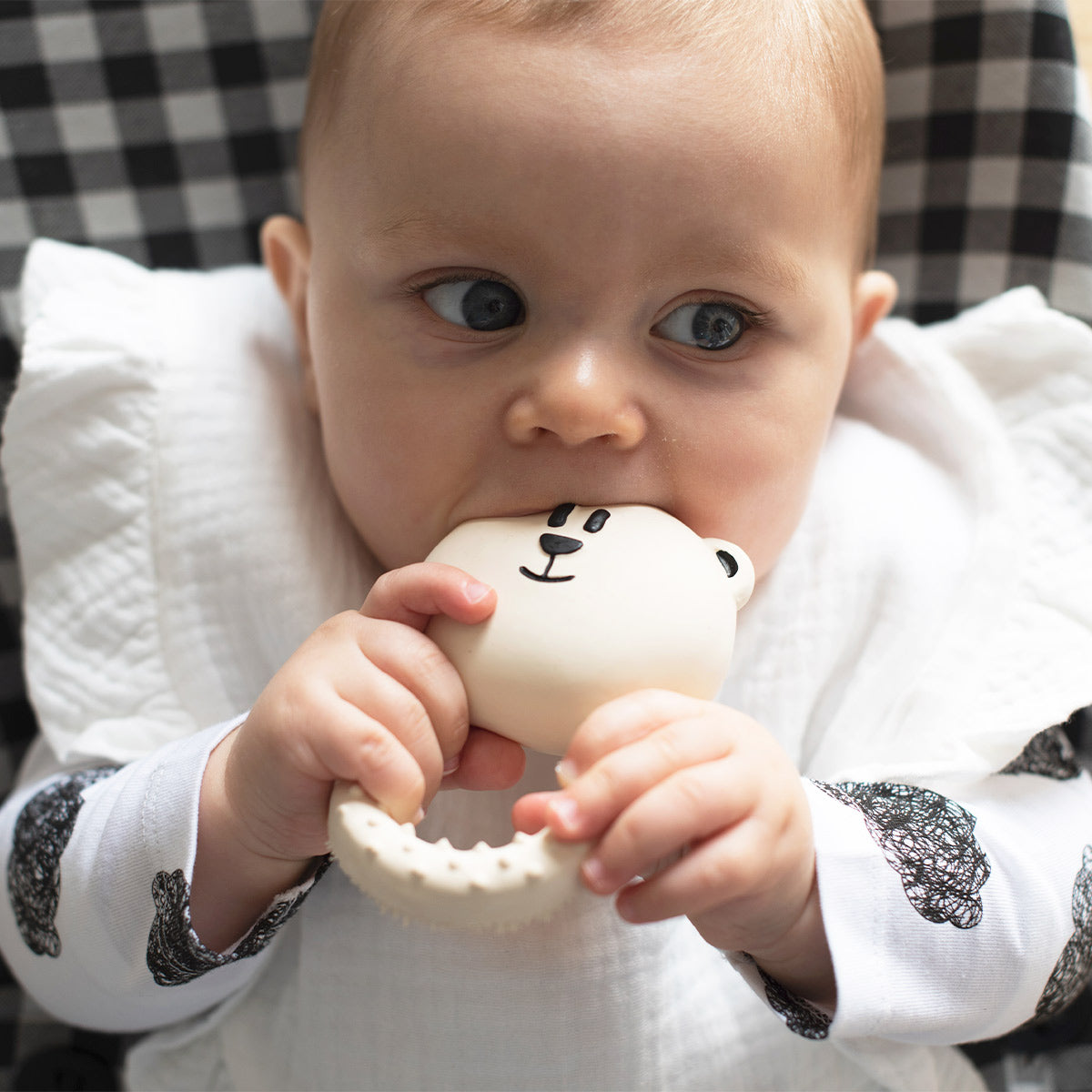 Exclusive teether with the Minicoton Animals. 4 different Animals available: Polar, Frog, Koala, and Pig.