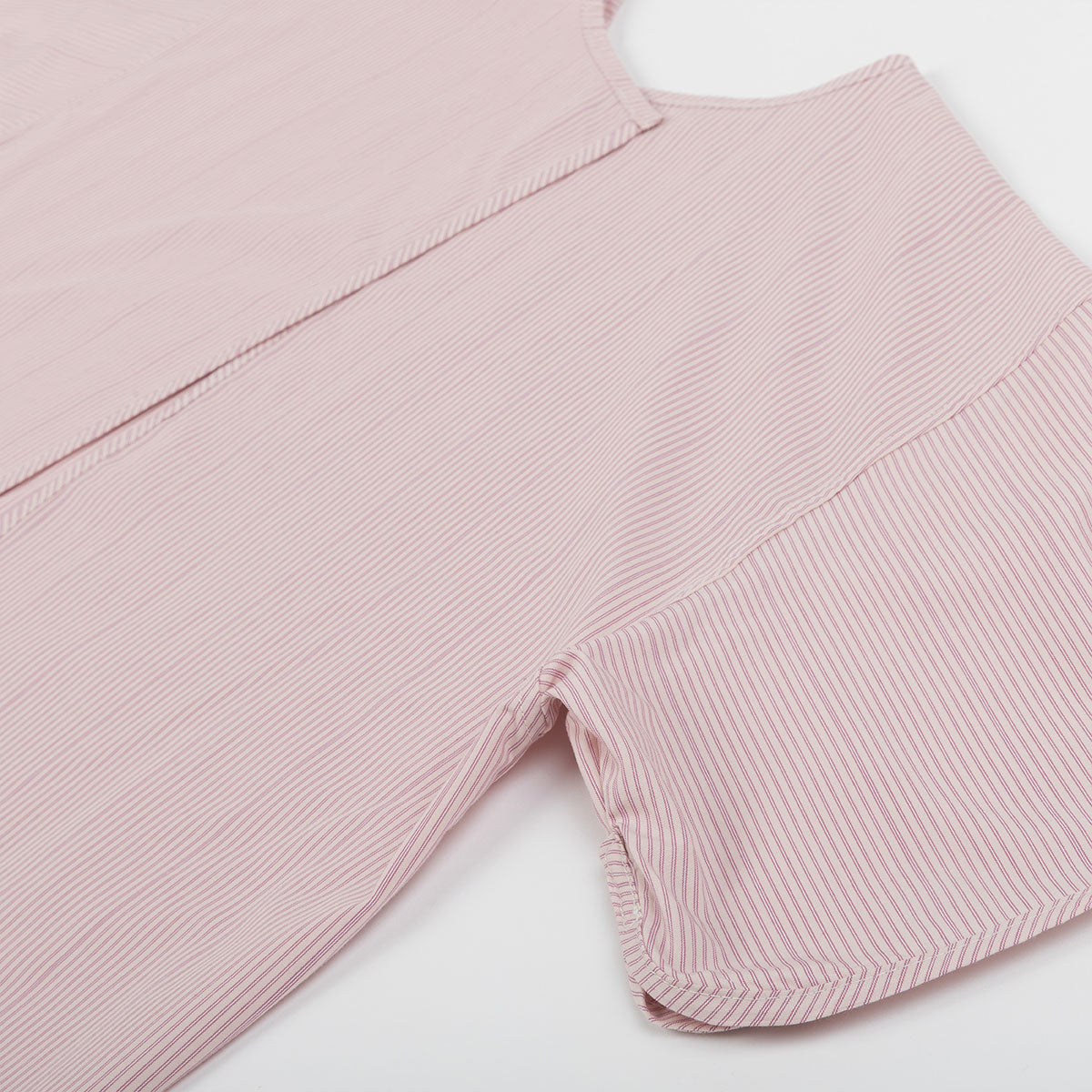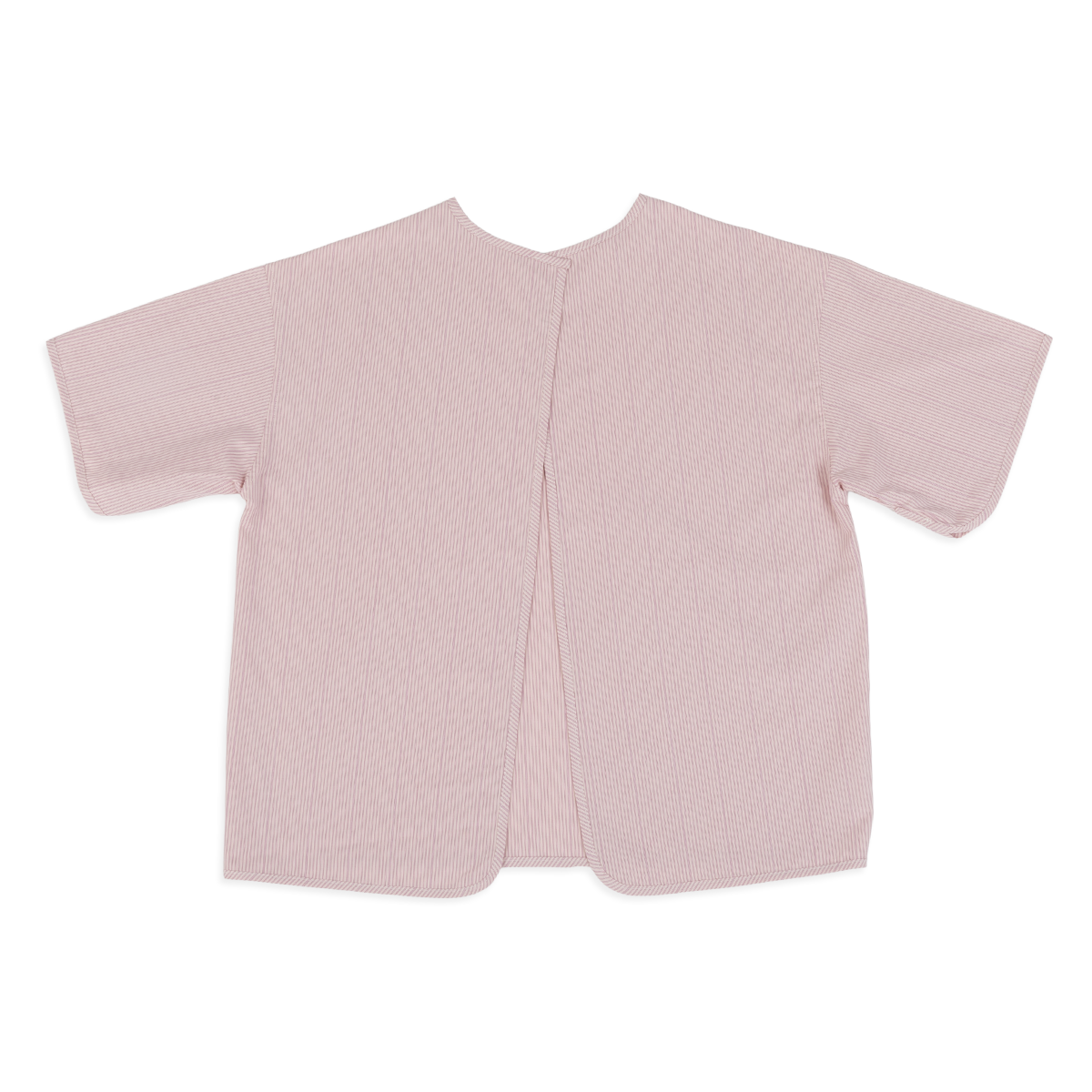 Short sleeve blouse ideal for a fresh and versatile look. It has a relaxed silhouette with a round neck and button closure at the back.