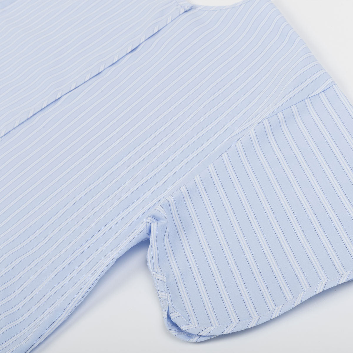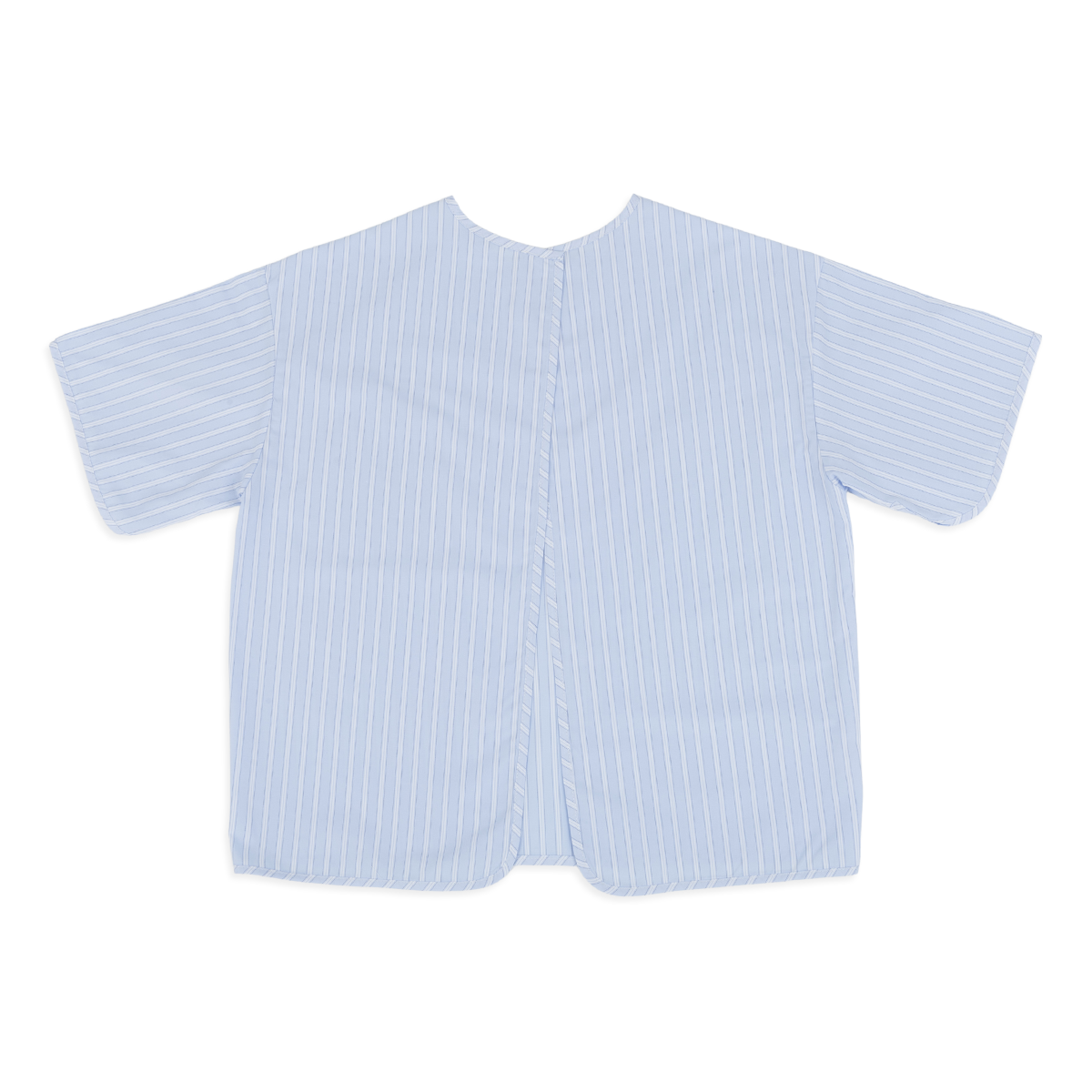 Short sleeve blouse ideal for a fresh and versatile look. It has a relaxed silhouette with a round neck and button closure at the back.