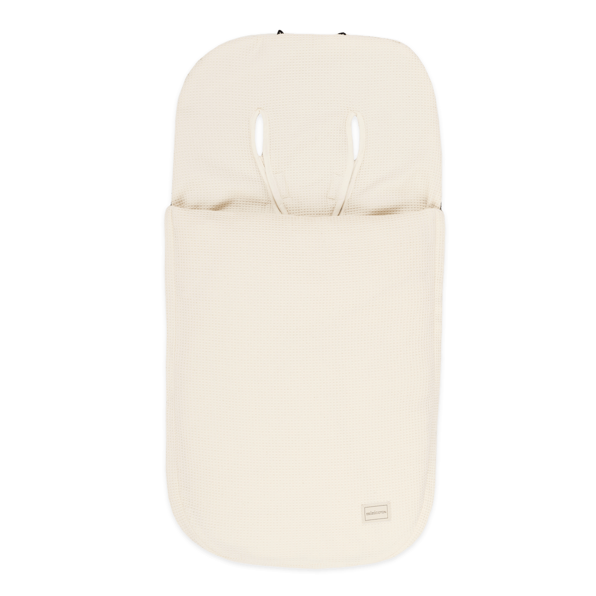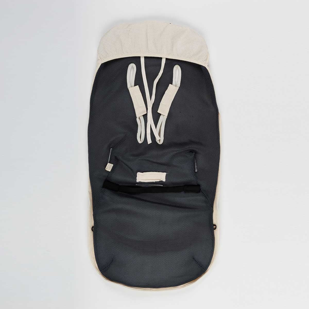 Our sack is made up of the seat cover, the sack, and its two fillings: one thin and one thicker, both feather-effect, light and fluffy. They can be used separately or both together, depending on the needs. The sack is removable and all its parts can be separated; this way, it makes washing easier, as it is not necessary to wash it completely, only the parts that need it. The inner part of the sack is made of velvety cotton knit in heather gray, soft to the touch and durable against rubbing. The outer part is made of our exclusive Lula fabric of 100% organic cotton, with a waffle texture.