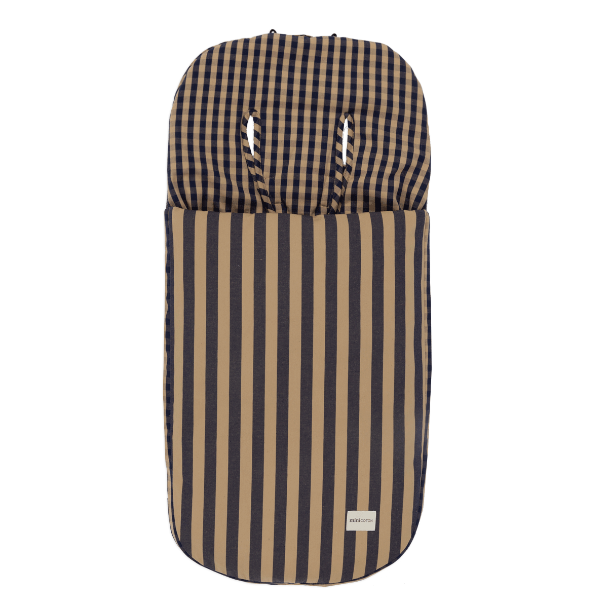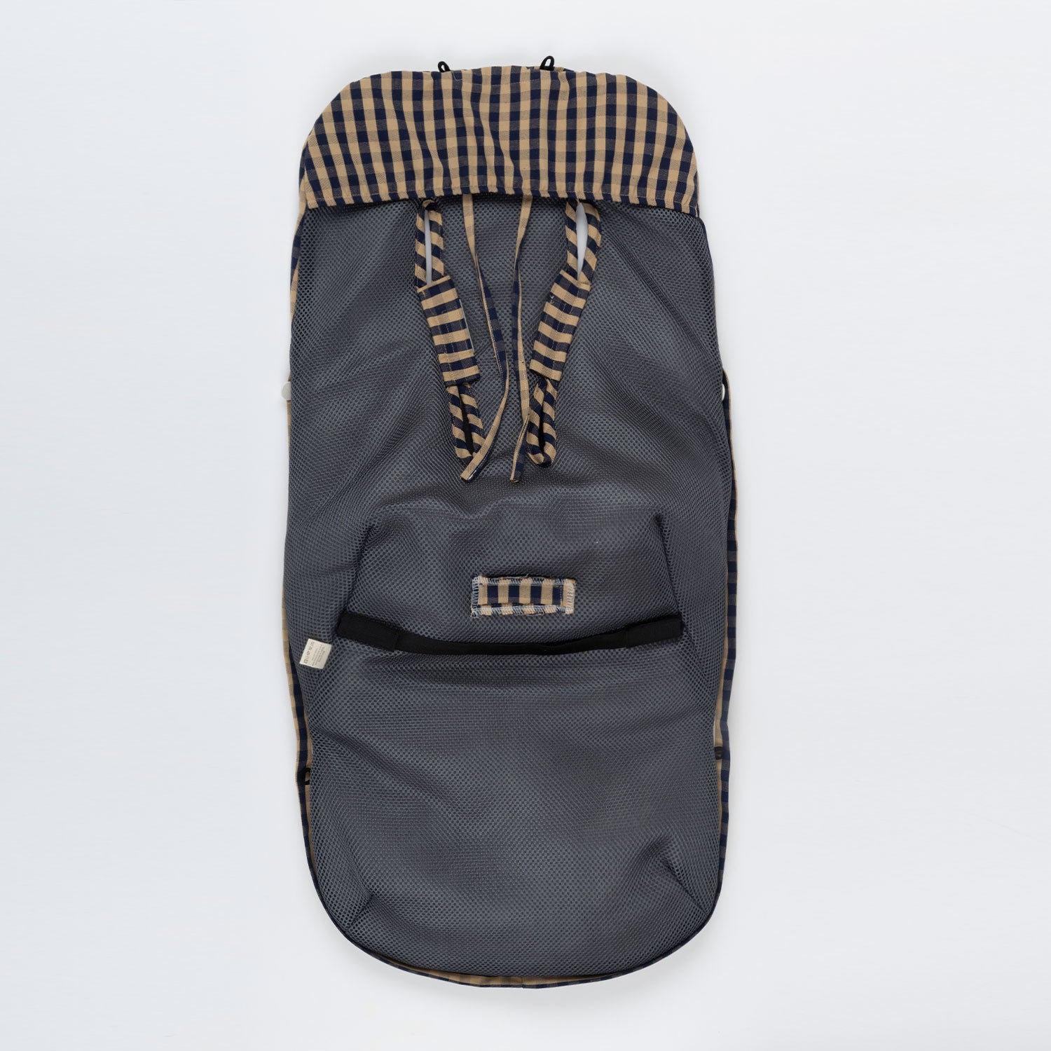This is our universal sack for strollers. It consists of the stroller cover, the sack, and its two fillings: one thin and another thicker with a down effect, light and fluffy. They can be used separately or both together depending on the needs. The sack is removable and all its parts can be separated; this way, it makes washing easier, as it is not necessary to wash it completely, only the parts that need it. The inner part of the sack is made of velvety cotton knit in heather gray, soft to the touch and durable against rubbing. Outer fabric 100% cotton.