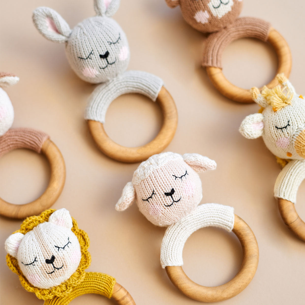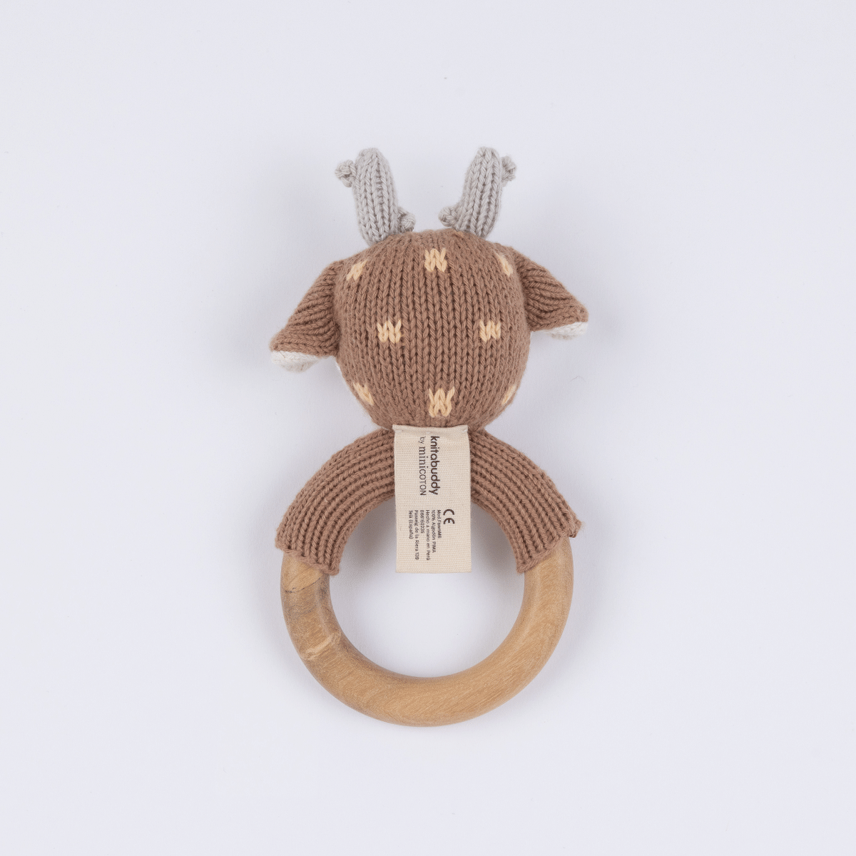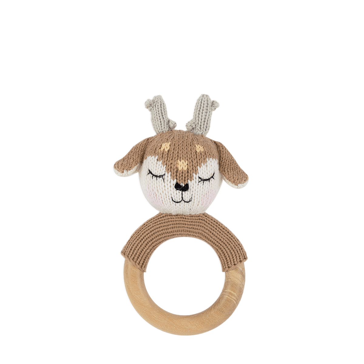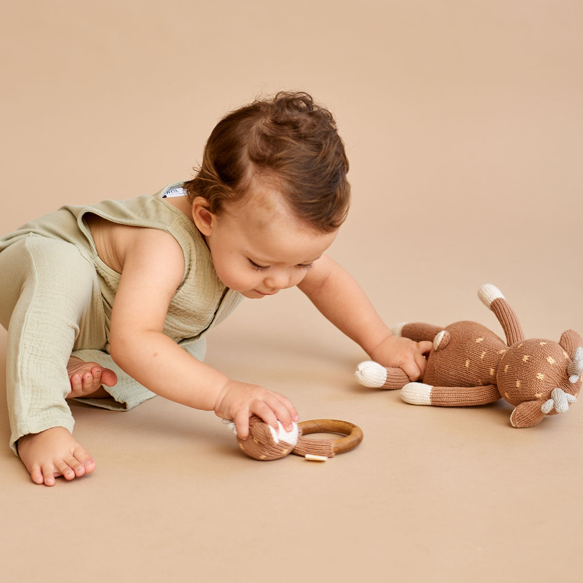 Olivia. The deer teether handcrafted with 100% organic PIMA cotton, Oeko-Tex 100 certified and filled with hypoallergenic recycled polyester. Non-toxic eco-friendly dyes. Suitable for sensitive skin.