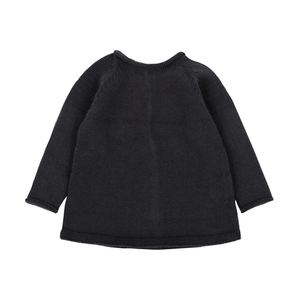 Knit top. It fastens at the back with sustainable Minicoton buttons, as they are made from cotton.