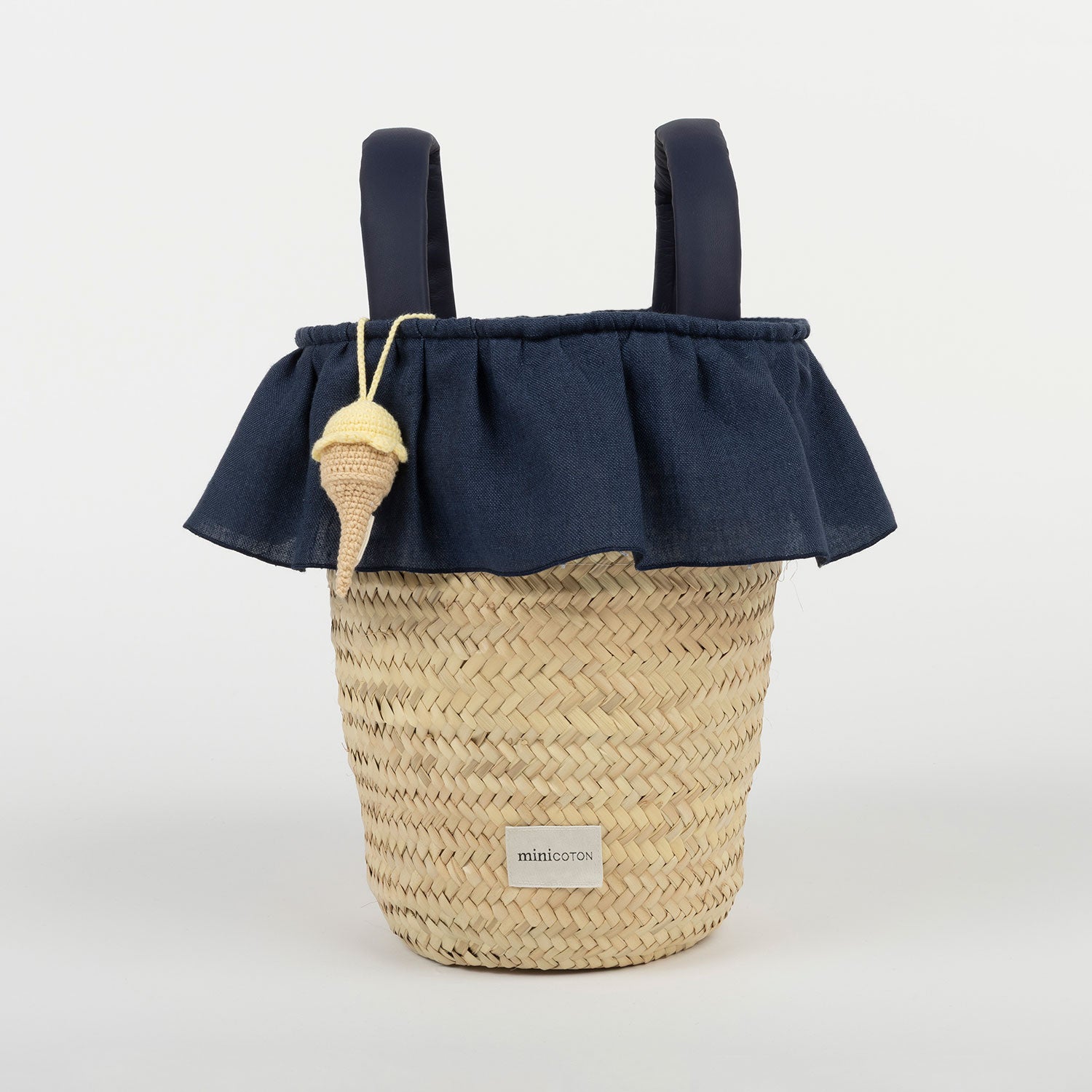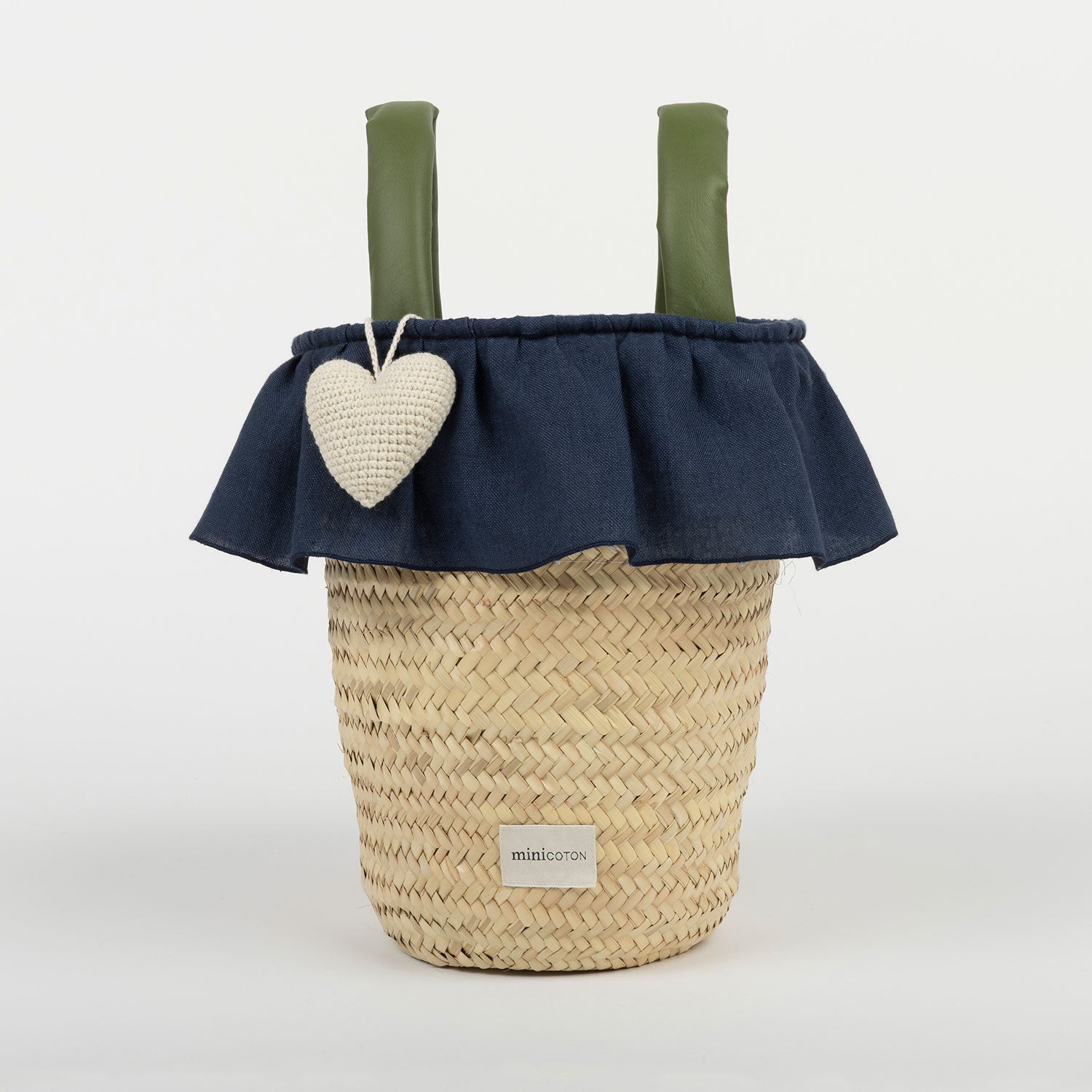 Un sac très spécial grâce à ses anses amovibles, qui adoptent différentes positions pour être parfait comme sac à main ou sac pour la poussette. En seulement deux clics, votre sac change de format pour vous accompagner au mieux. Il se ferme très facilement grâce à ses cordons sur le dessus, comme un sac à goûter. Il offre une grande capacité et son intérieur est en tissu déperlant et anti-taches, facile à nettoyer avec un chiffon humide. L’extérieur est en 100% lin et panier en feuille de palmier.