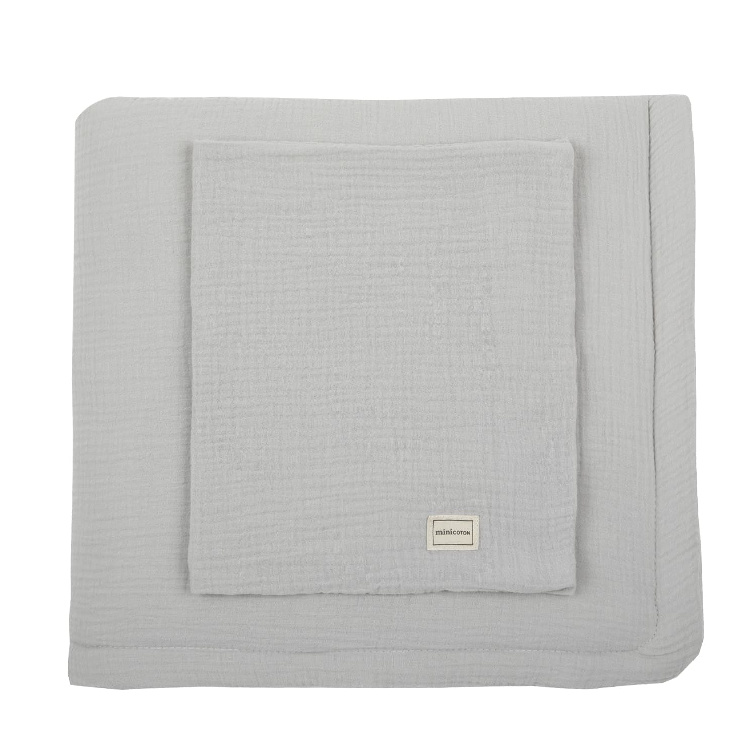 Taie d'oreiller 50 x 30 cm + Couverture 116 x 90 cm adaptée aussi bien aux lits bébé de 120x60cm qu'à ceux de 140x70cm. Très légère et toute douce pour le confort du bébé. Tissu principal et intérieur en mousseline de coton biologique 100%.