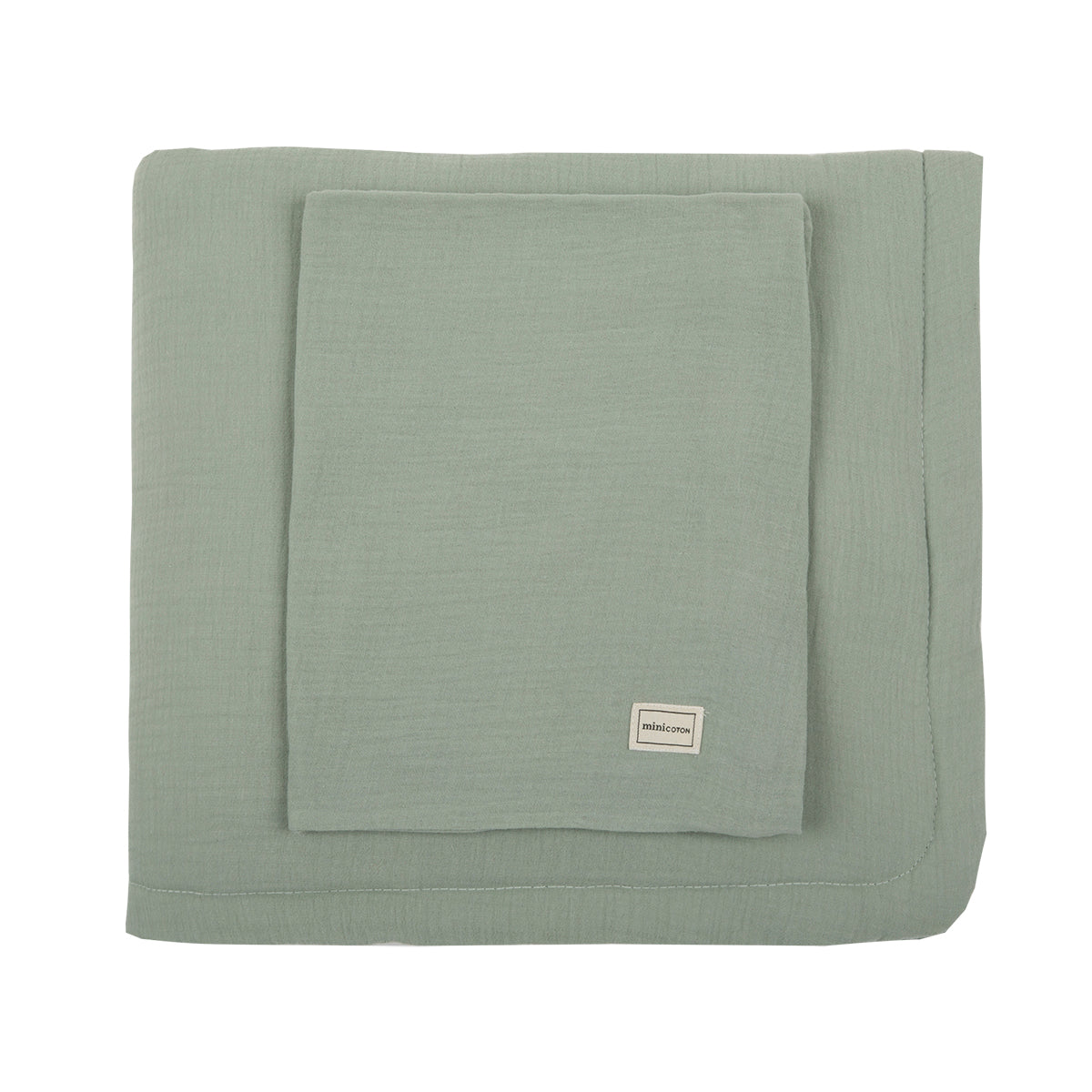 Housse de coussin 50 x 30 cm + Couverture 116 x 90 cm adaptée aussi bien aux lits bébé de 120x60cm qu'à ceux de 140x70cm. Très légère et toute douce pour le confort du bébé. Tissu principal et intérieur en mousseline de coton biologique 100%.