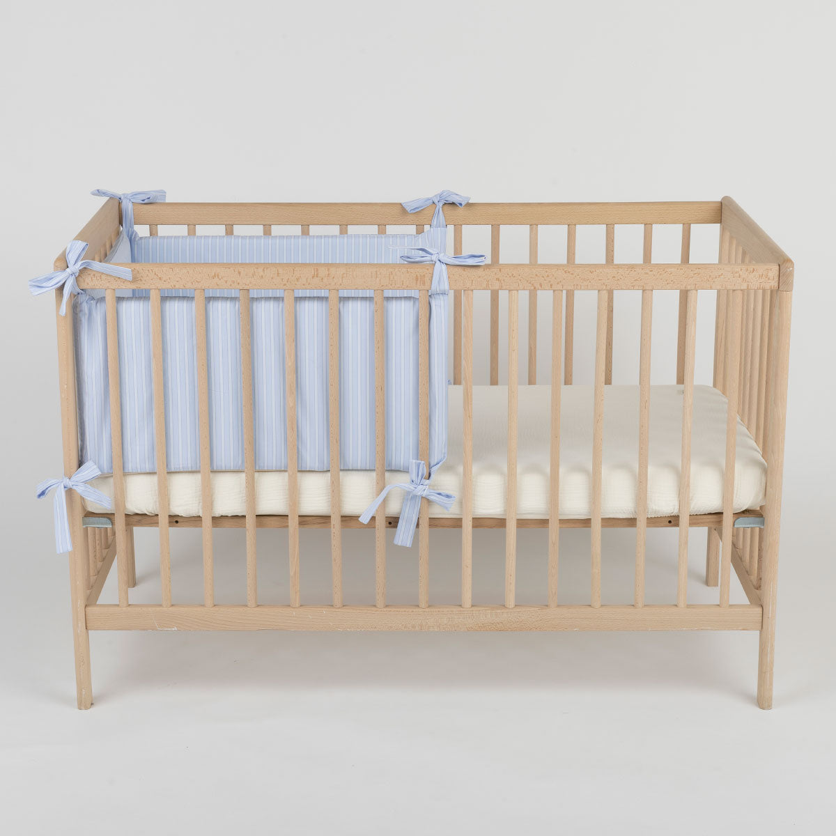 Ce protège-lit “Half” est conçu pour des lits de 120 x 60 cm. Il couvre la moitié du lit au niveau de la tête. Si vous préférez, vous pouvez couvrir tout le périmètre du lit en achetant deux unités.