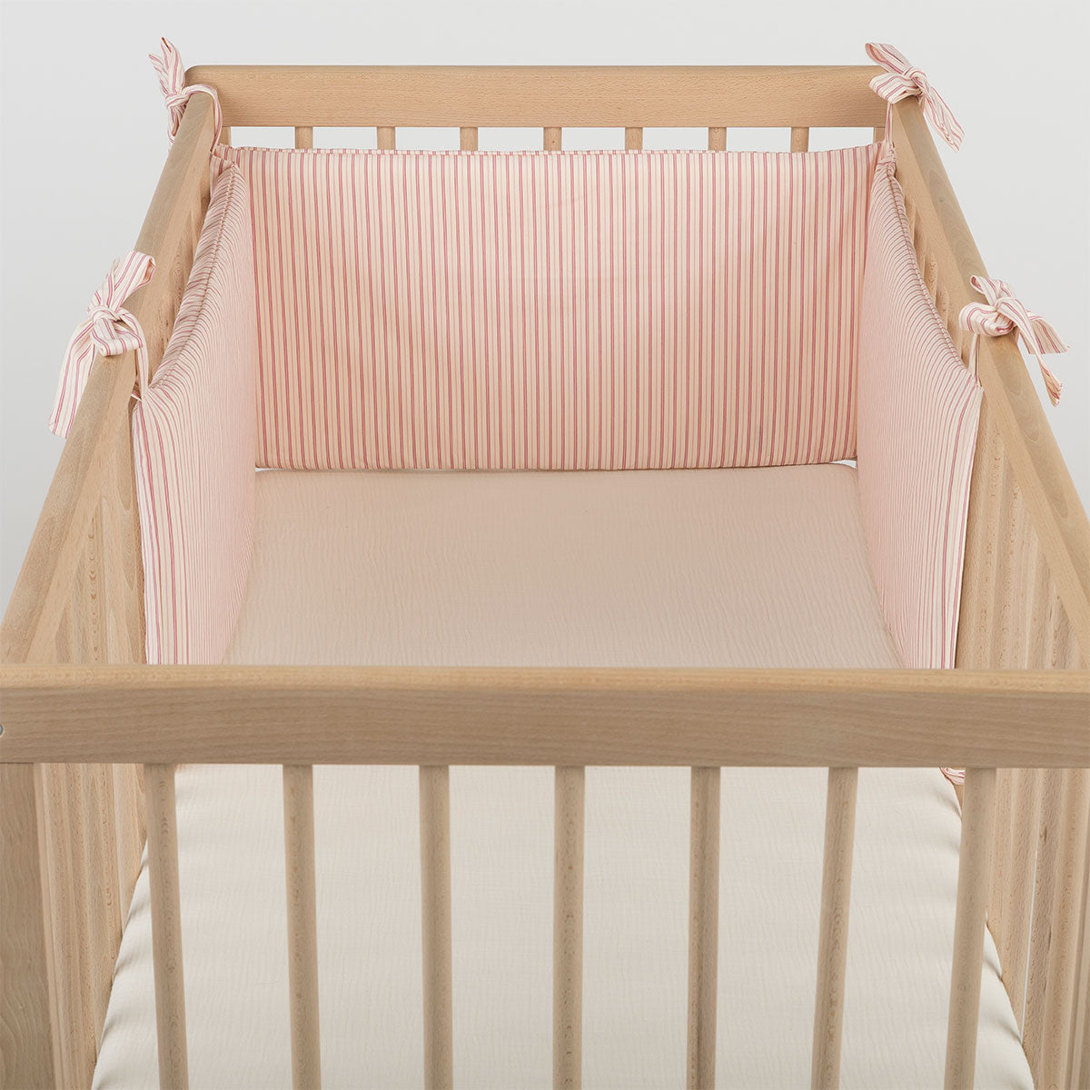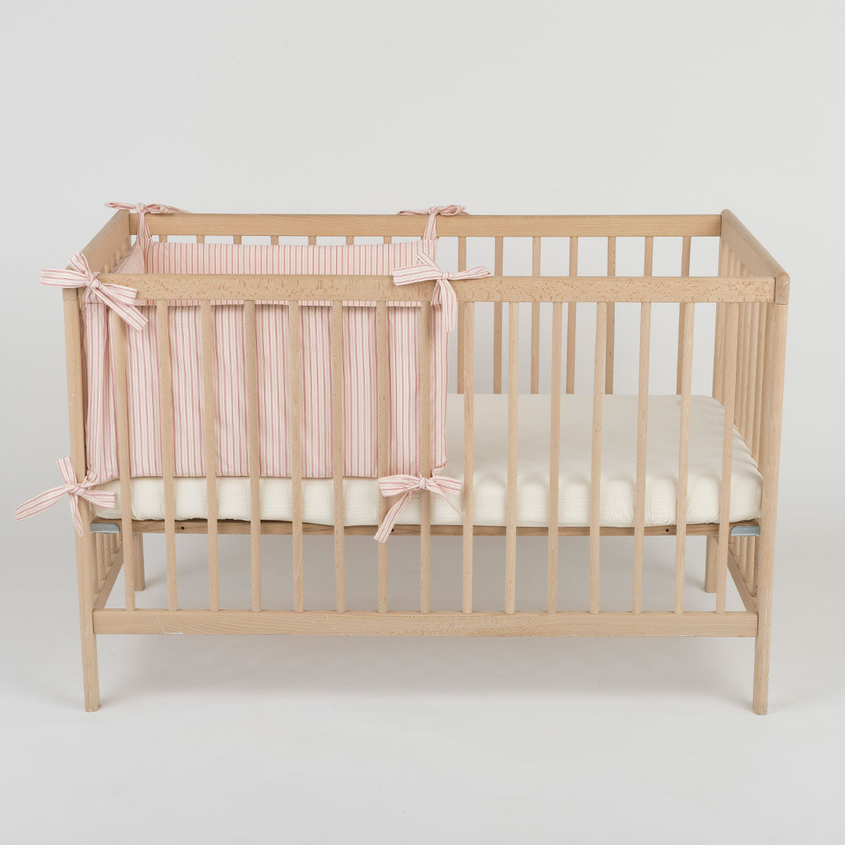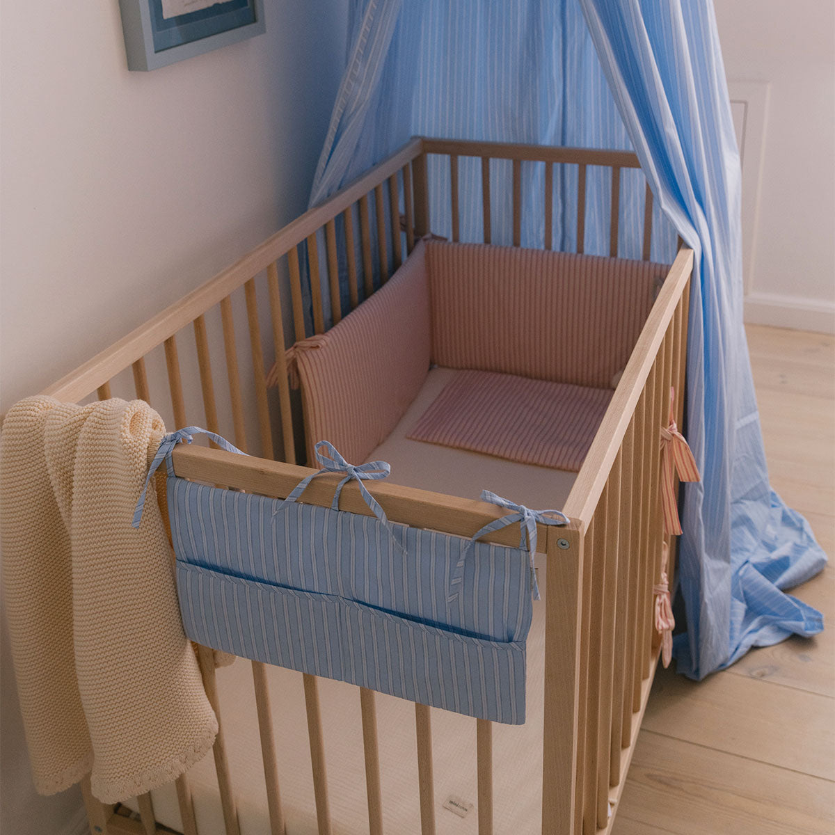 Ce protège-lit “Half” est conçu pour des lits de 120 x 60 cm. Il couvre la moitié du lit du côté de la tête. Si vous préférez, vous pouvez couvrir tout le périmètre du lit en achetant deux unités.