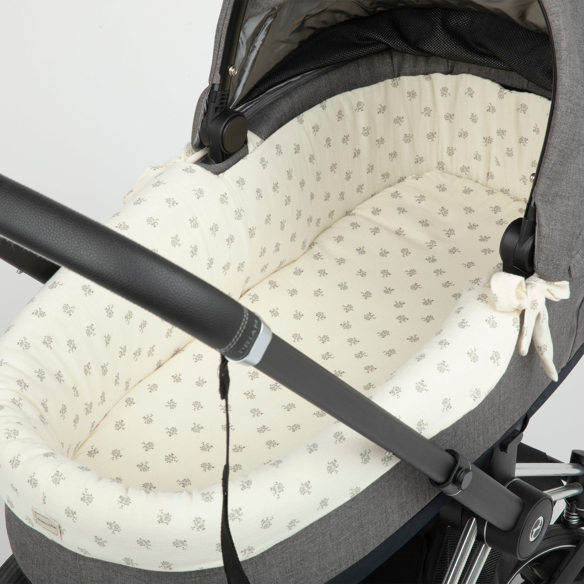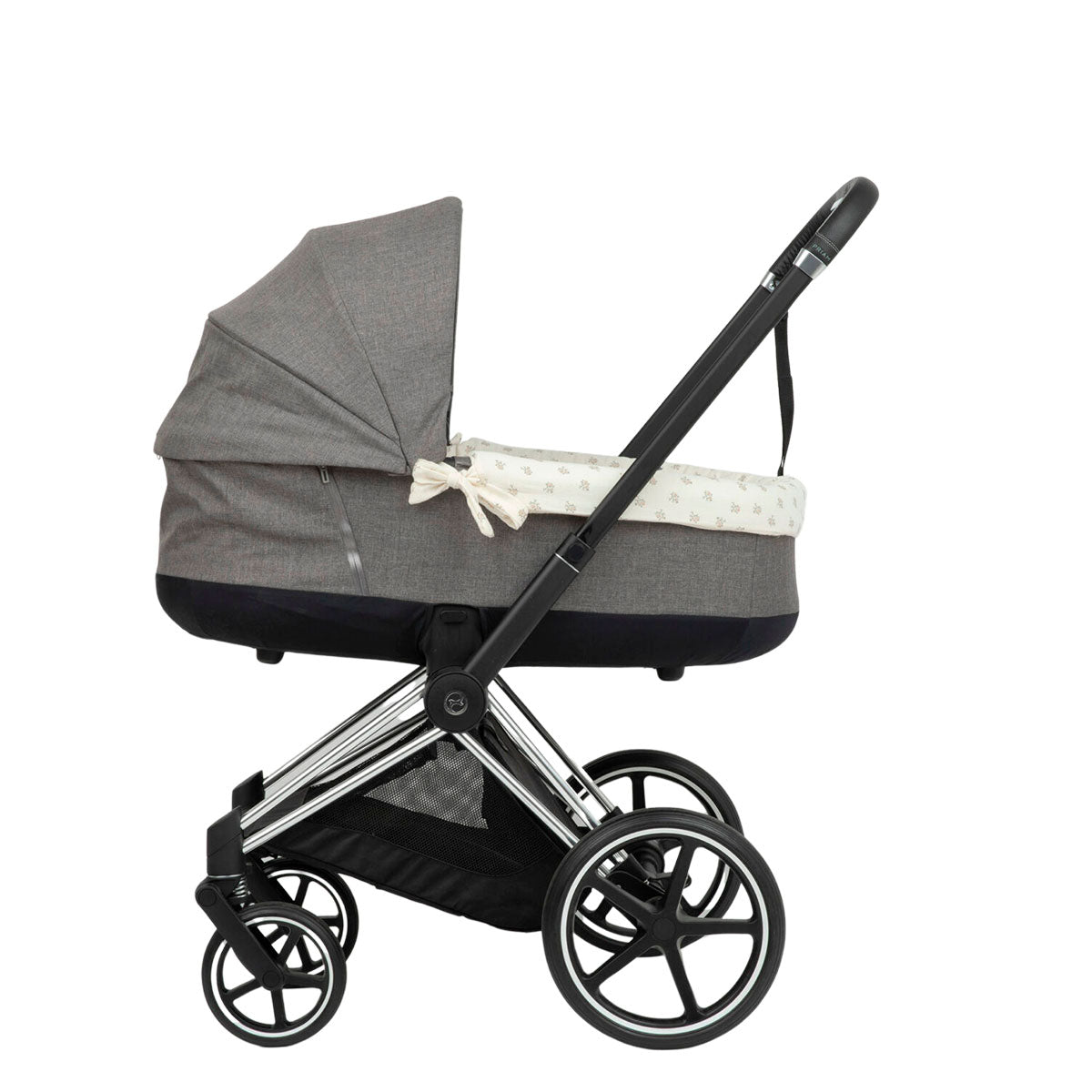 Voici notre housse pour la nacelle du Cybex Priam. Elle couvre toute la nacelle et se place sous le matelas, c’est pourquoi nous recommandons d’acheter le drap-housse assorti ou de combiner d’autres couleurs ou motifs pour habiller tout l’intérieur. Elle est disponible en différentes couleurs et motifs. Pour parfaire l’habillage de la nacelle, le sac ovale, une couverture ou une mousseline sont idéaux… selon vos besoins.