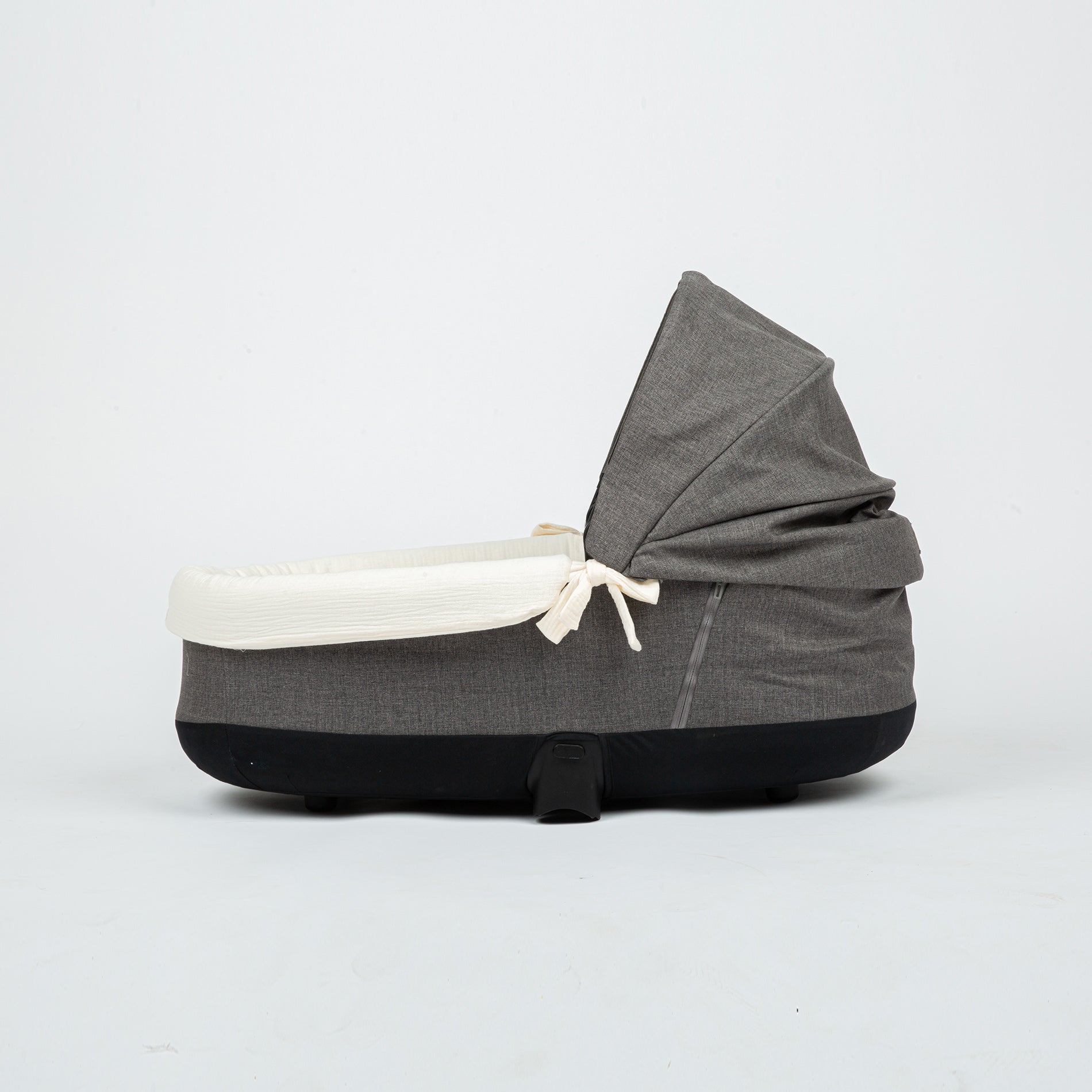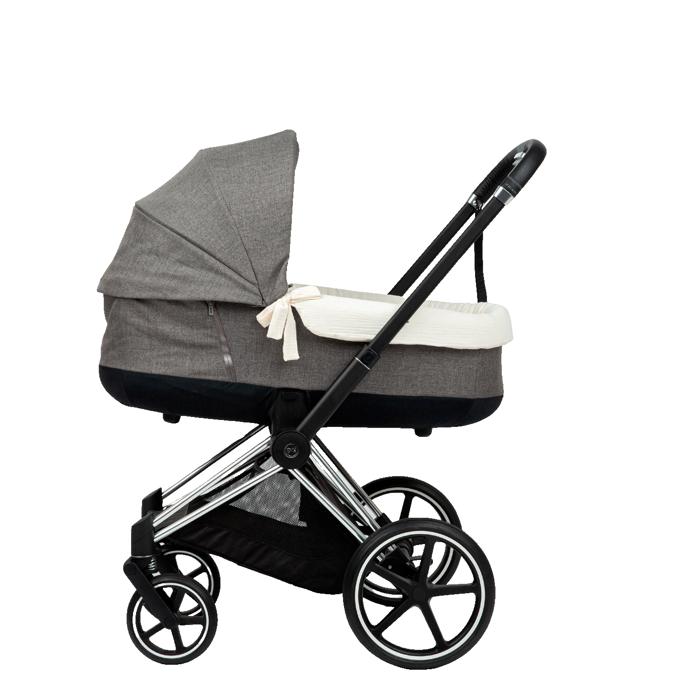 Ceci est notre housse pour la nacelle du Cybex Priam. Elle couvre toute la nacelle et se place sous le matelas, c’est pourquoi nous recommandons d’acheter le drap-housse assorti ou de combiner d’autres couleurs ou motifs pour habiller tout l’intérieur. Elle est disponible en différentes couleurs et motifs. Pour parfaire l’habillage de la nacelle, le sac ovale, une couverture ou une mousseline sont idéaux… selon vos besoins.