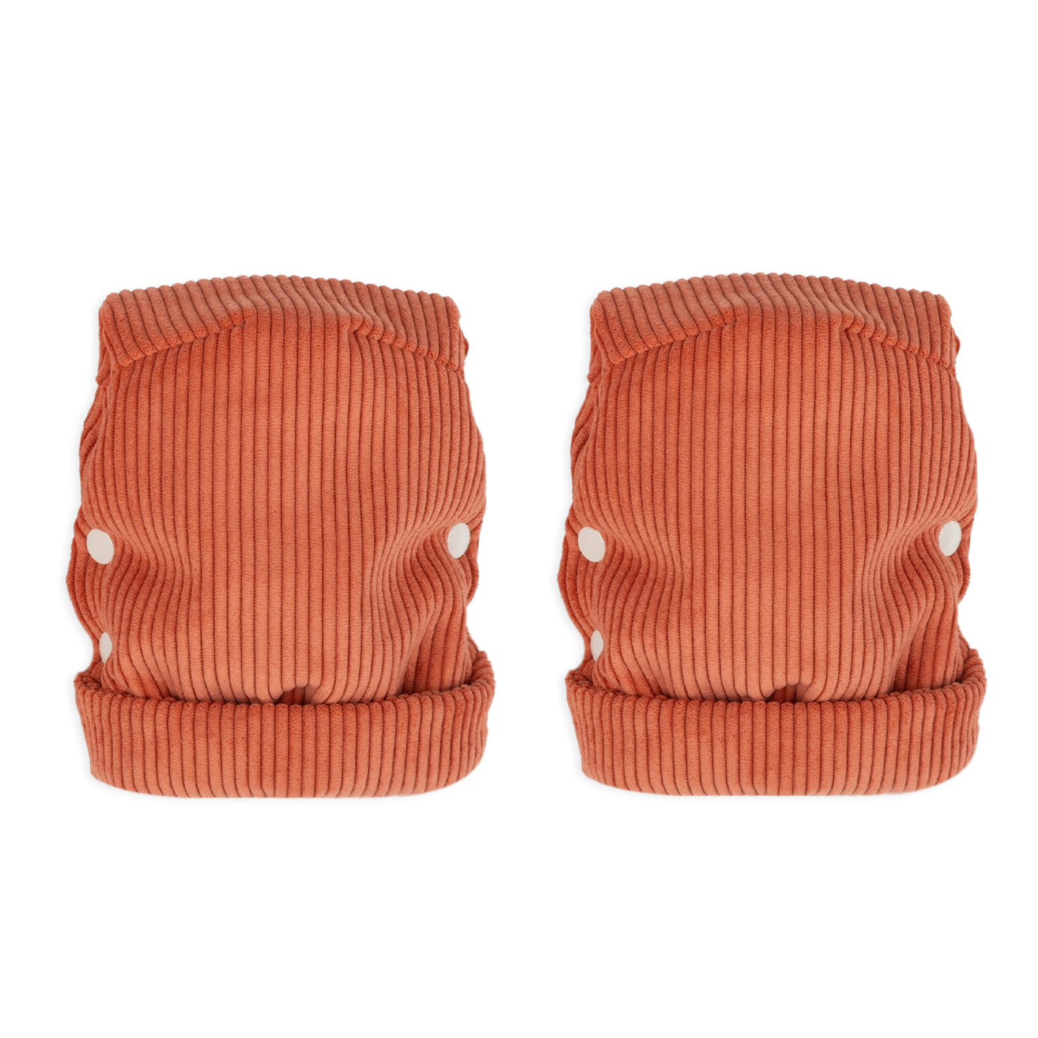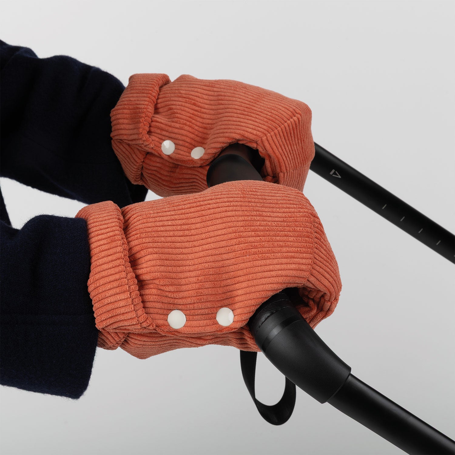 Ils s'ajustent au guidon avec des boutons-pression sur les côtés, restant fixés au guidon pour garder les mains couvertes lors de la promenade.