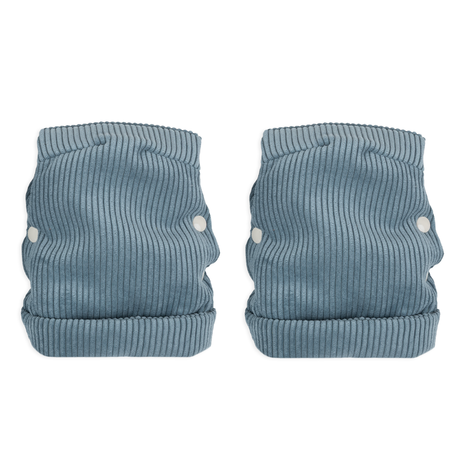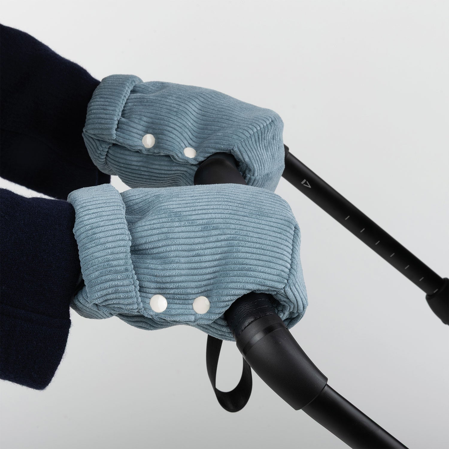 Ils s'ajustent au guidon avec des boutons-pression sur les côtés, restant fixés au guidon pour garder les mains couvertes lors de la promenade.