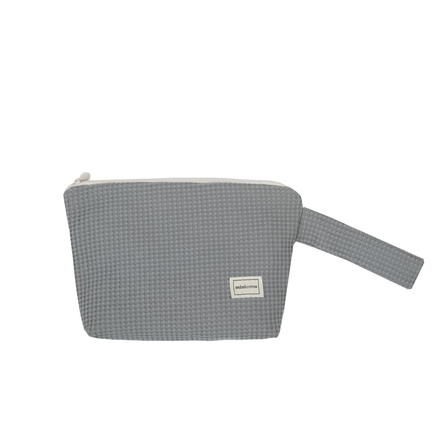 Il est très pratique car il a une anse pour pouvoir mettre le sac au poignet, et ainsi avoir les mains libres pour s'occuper de notre bébé. 100% coton biologique.
