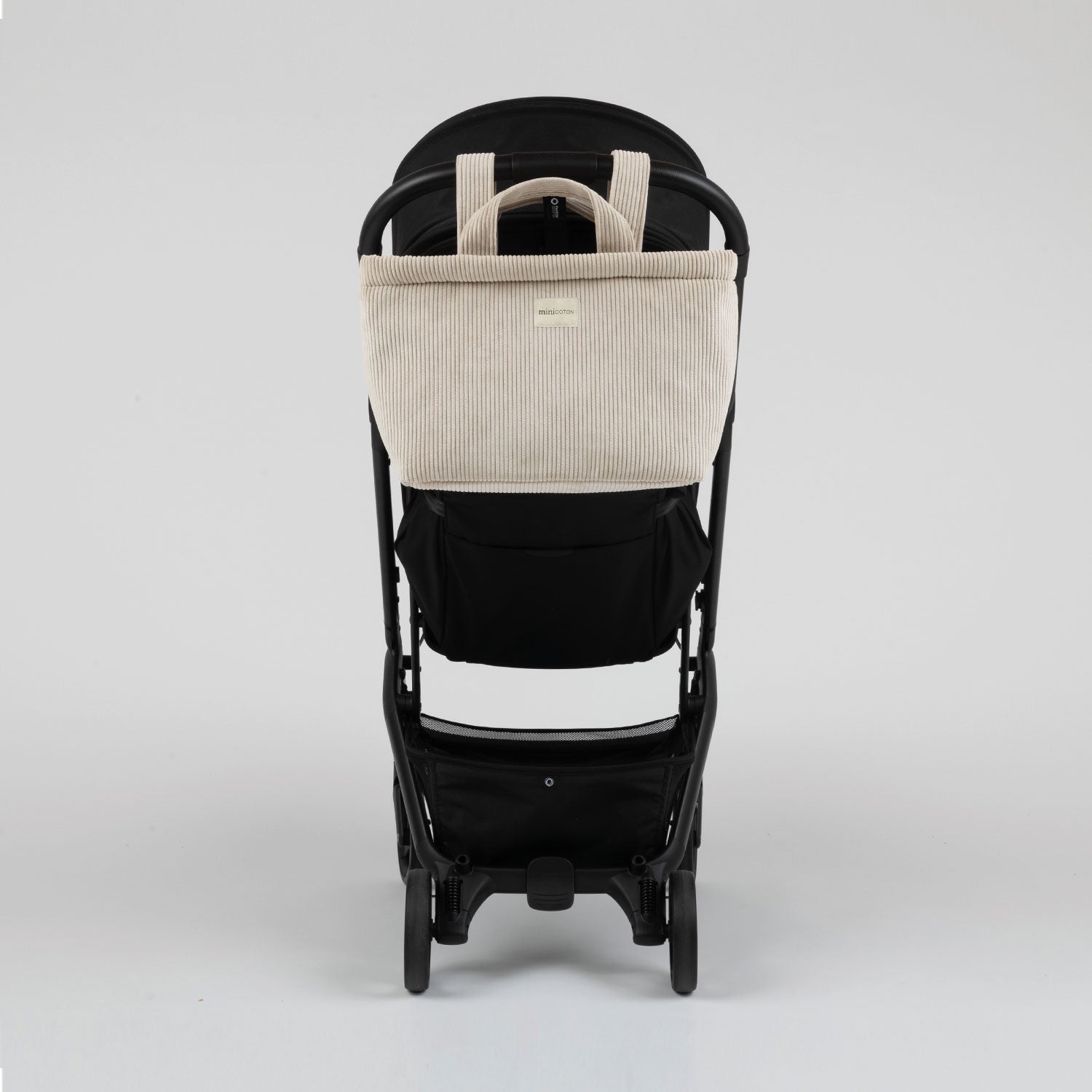 De plus, elle inclut des sangles amovibles avec boutons-pression pour l'attacher à la poignée de la poussette.