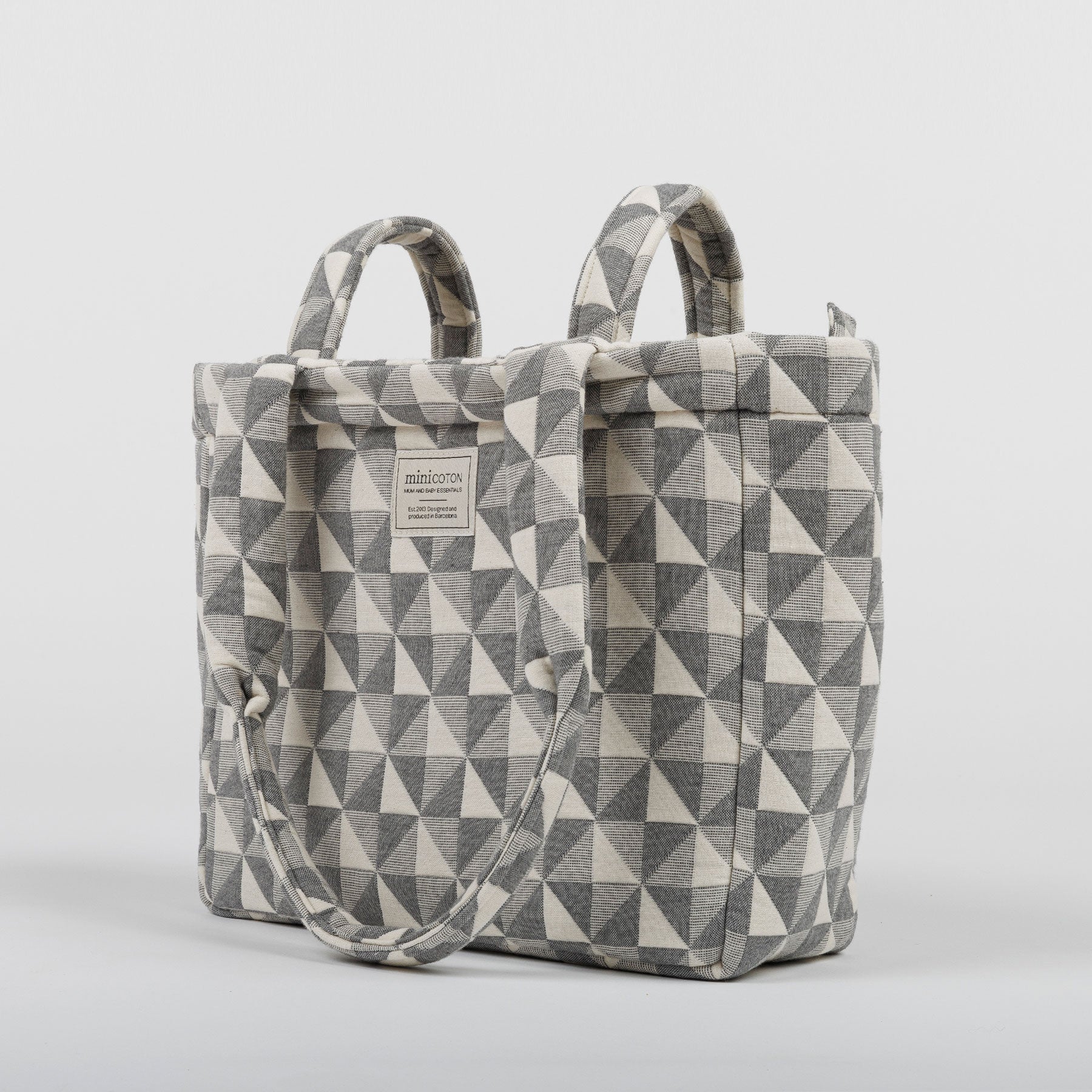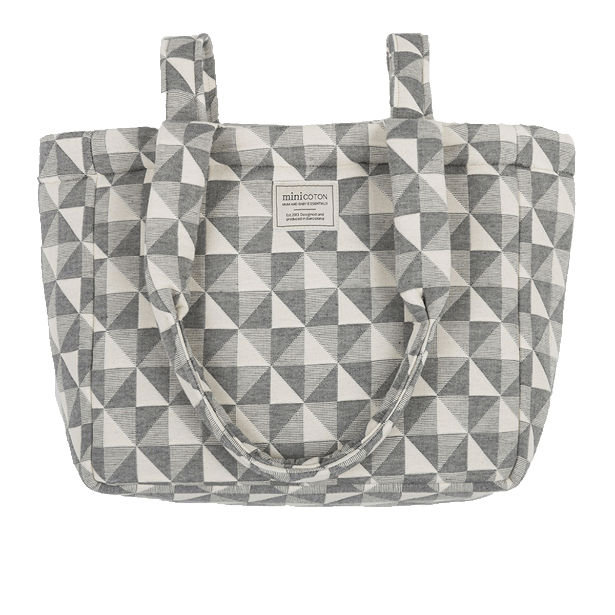 Un sac spacieux et très léger. Avec des sangles pour la poignée de la poussette qui se cachent à travers ses œillets, pour se transformer en un pratique tote à porter à l'épaule. Avec deux poches intérieures et une fermeture éclair.