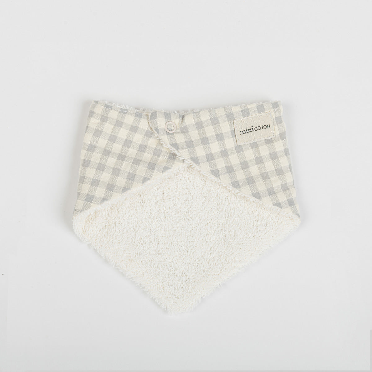 Il bavaglino è particolarmente pratico per evitare che i vestiti del bambino si bagnino con la bava. Il bambino si sentirà confortevole e eviteremo irritazioni e arrossamenti. Si chiude con un pratico bottone a scatto, ha due posizioni di regolazione per adattare la misura del collo. È realizzato senza cuciture per evitare sfregamenti.