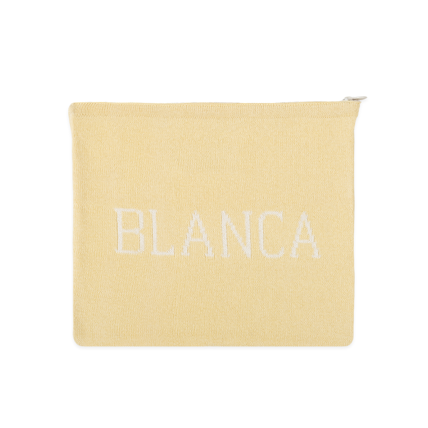 Borsa per il cambio tessuta con il nome e con chiusura a zip.