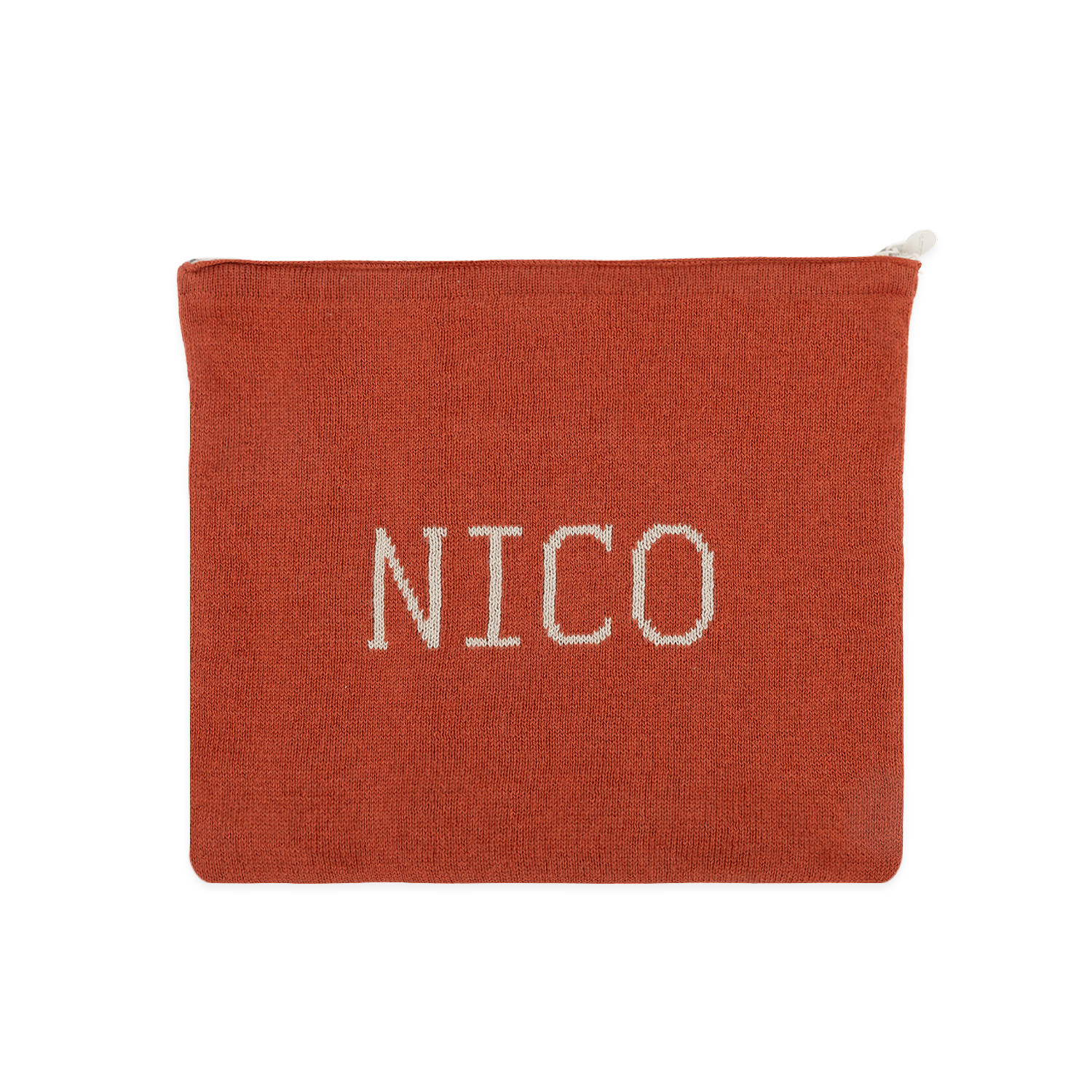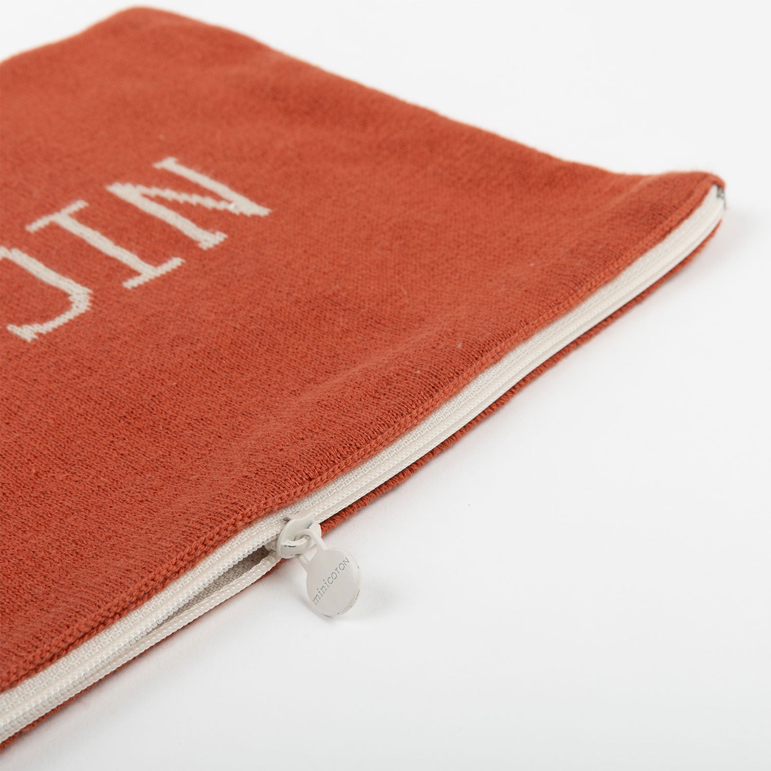 Borsa per il cambio tessuta con il nome e con chiusura a cerniera.