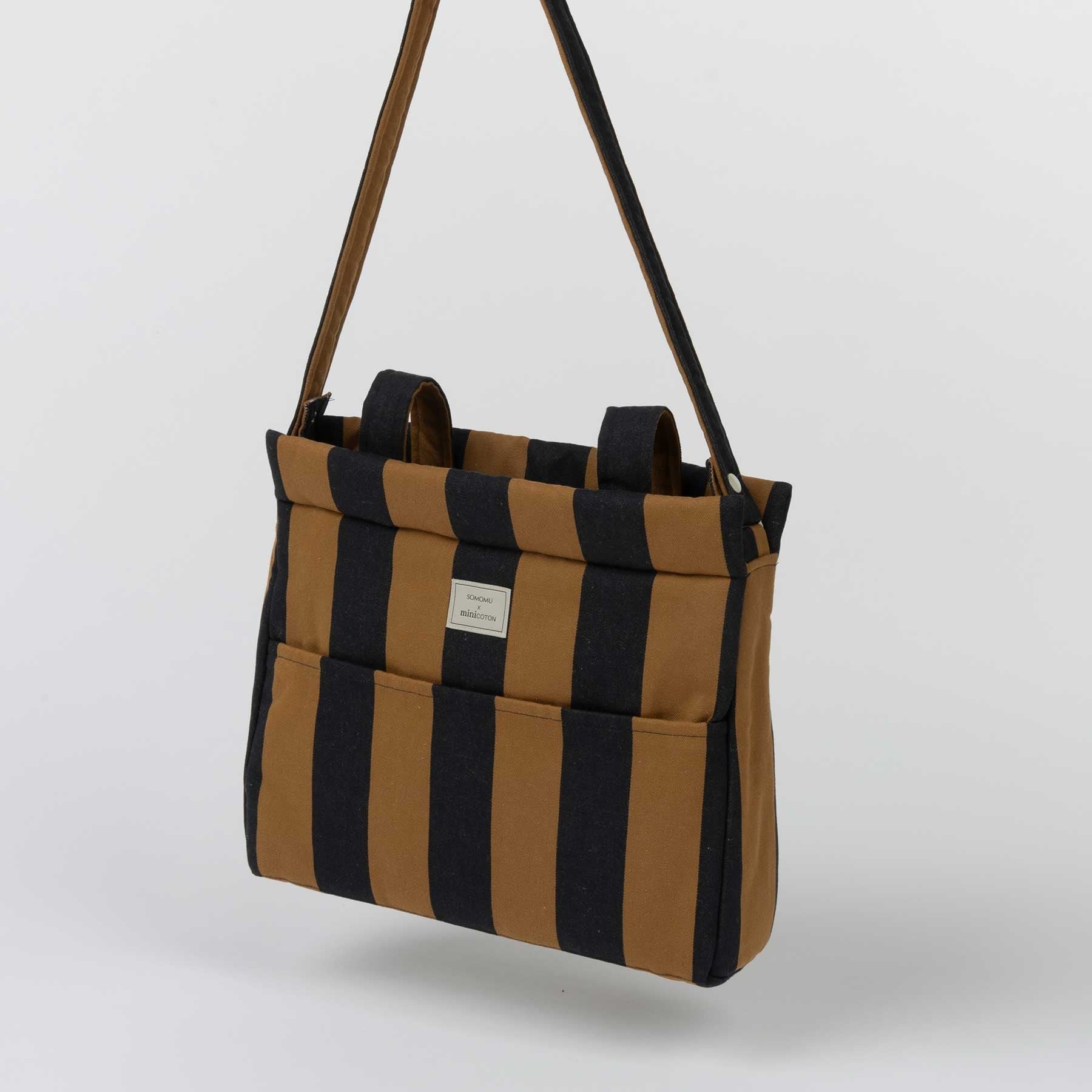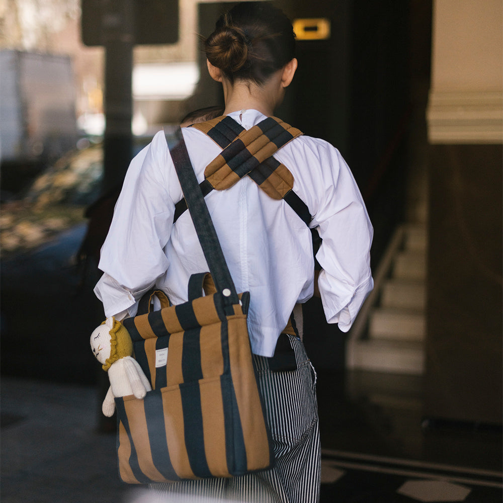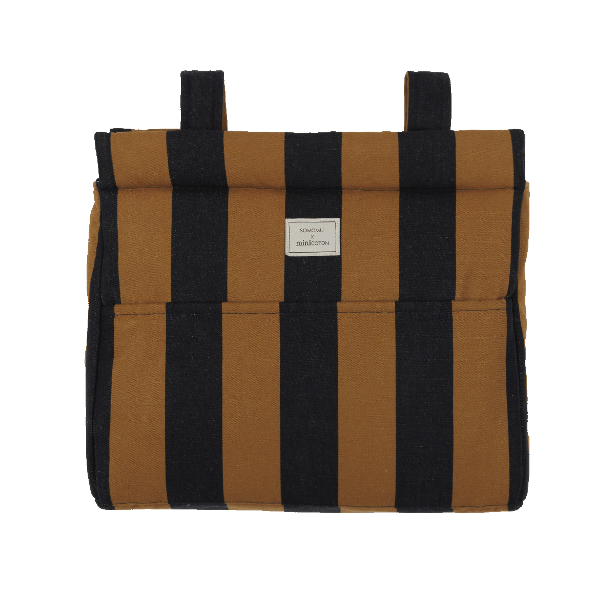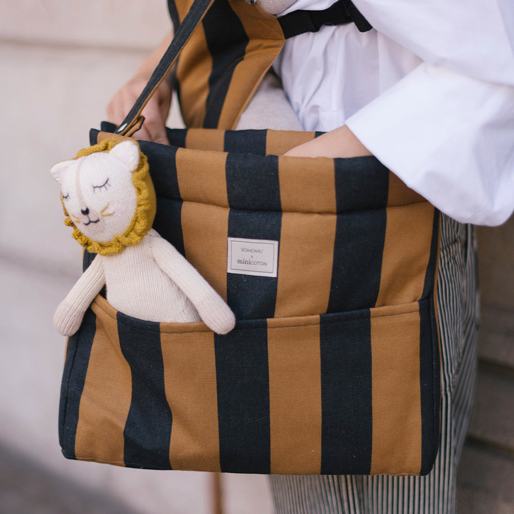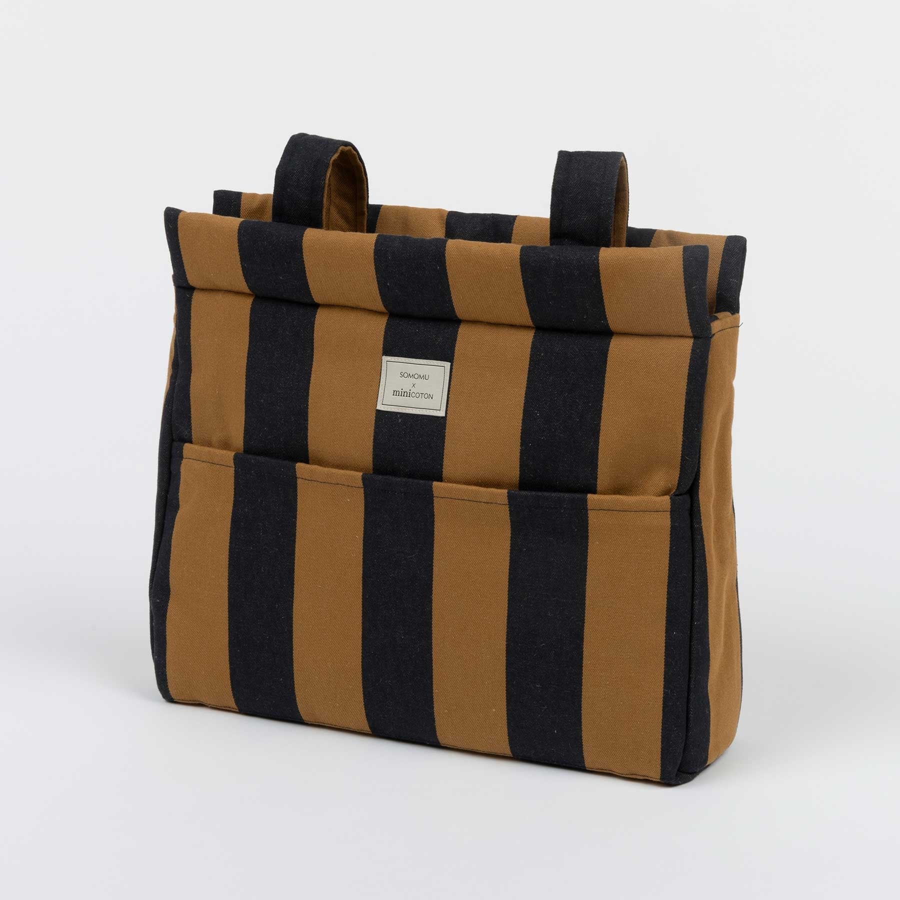 La nostra borsa Icon per il passeggino è molto leggera. È imbottita, quindi i prodotti al suo interno sono protetti. Ha l'interno in spugna con retro impermeabile in modo che, se si rovescia qualche liquido, venga assorbito e non trapassi. Si fissa al passeggino con due cinghie che si chiudono con bottone a scatto. Ha anche una tracolla removibile, che si regola anch'essa con bottone a scatto, per portarla comodamente sulla spalla o come borsa a tracolla. Si chiude con cerniera sia la parte superiore che la tasca frontale.