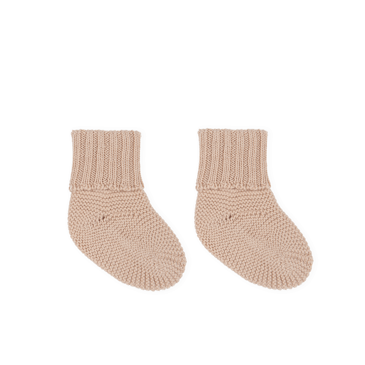 Calzini lavorati a maglia rasata e coste. Taglia unica newborn.