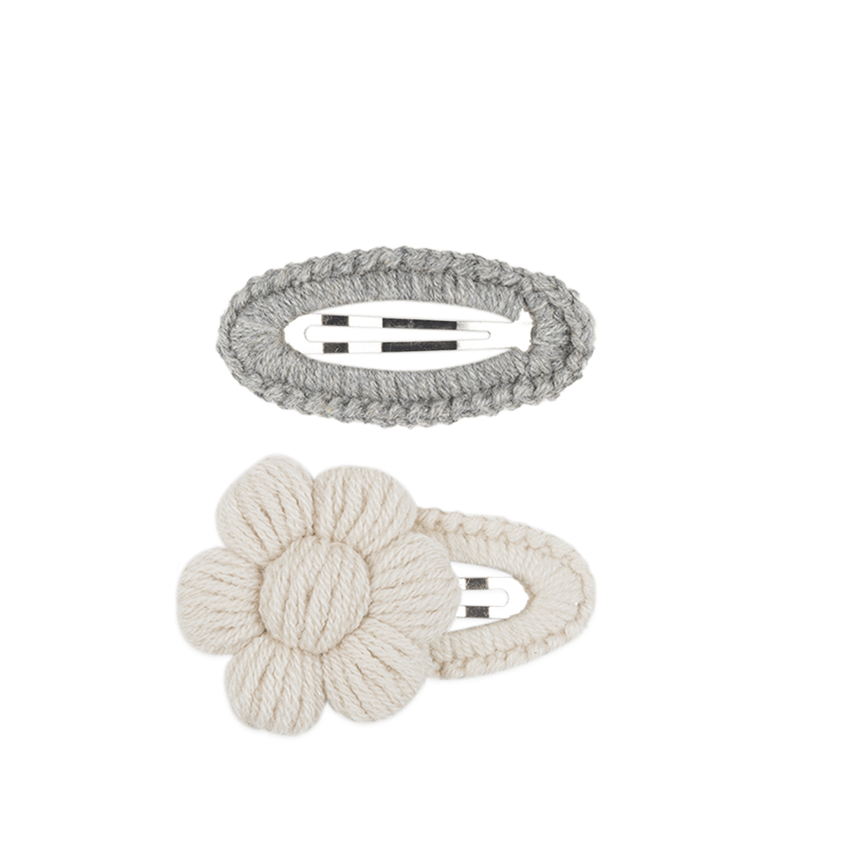 Set di 2 clips fatti a mano all'uncinetto in cotone 100% Oeko Tex Standard 100.