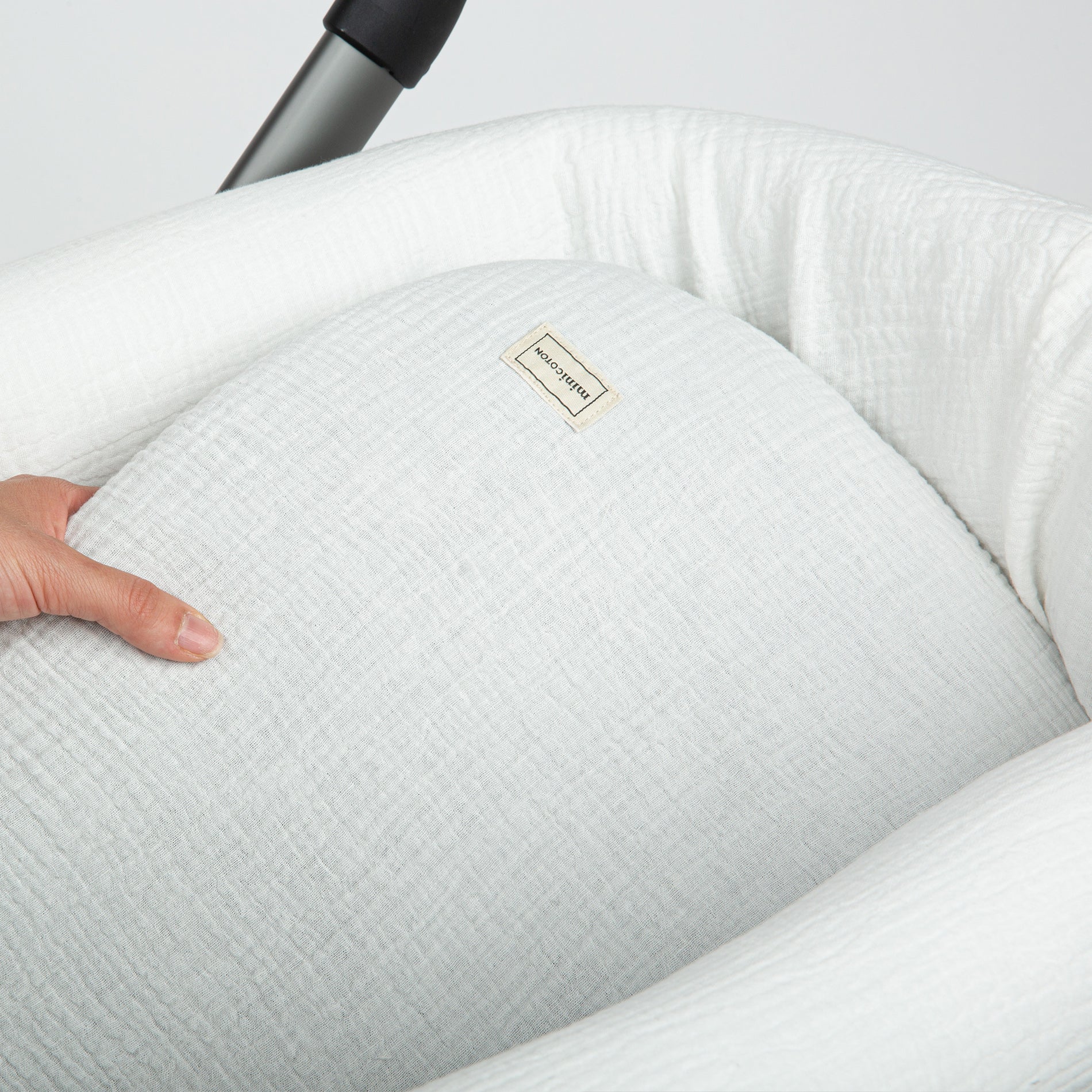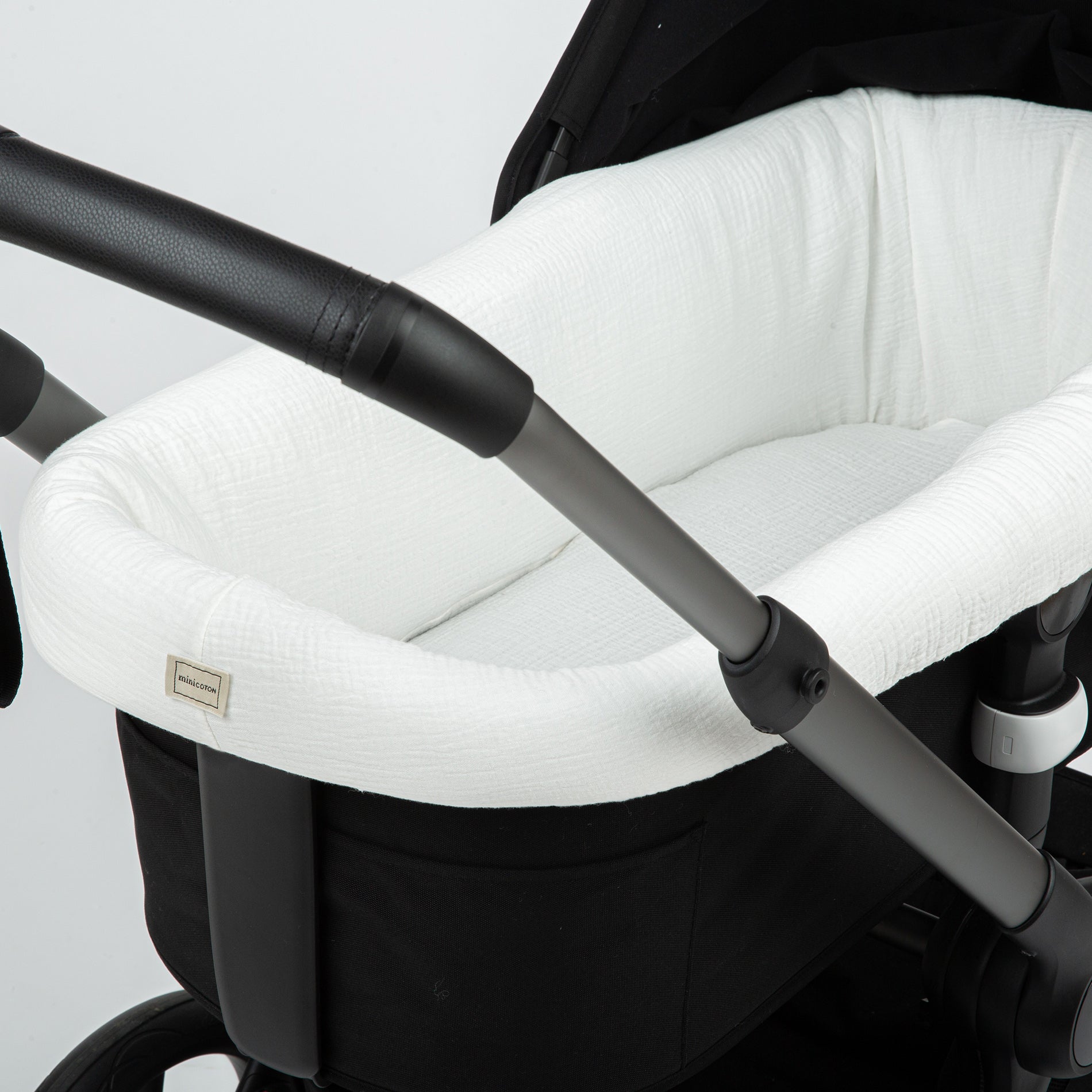 Questa è la nostra copertura per culla per Bugaboo Fox, Cameleon e Donkey... Minimal, come tanto ci piace. Si integra nella culla e si adatta sia con il copripiedi che senza, grazie alle sue cinghie laterali e al bordo elastico. Copre tutta la culla e si mette sotto il materasso, quindi consigliamo di acquistare il lenzuolo aderente abbinato (o combinando colori e stampe) per far sì che tutto l'interno sia vestito. Per completare l'abbigliamento della culla è ideale il sacco ovale, un arrullo o una mussola… a seconda delle tue esigenze. Tessuto di bambula di cotone organico 100% con certificazione Gots e Oeko-tex®.