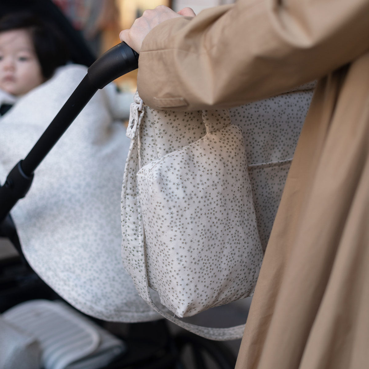 È molto pratica perché ha un manico per poter mettere la borsa al polso, e così avere le mani libere per occuparsi del bambino.