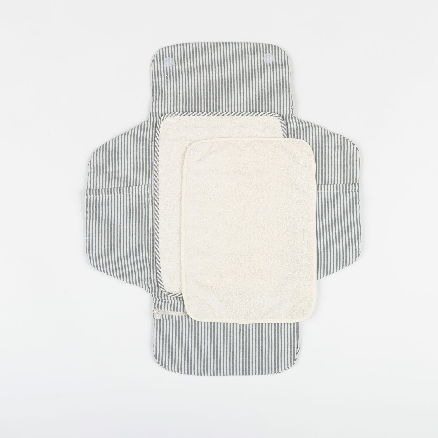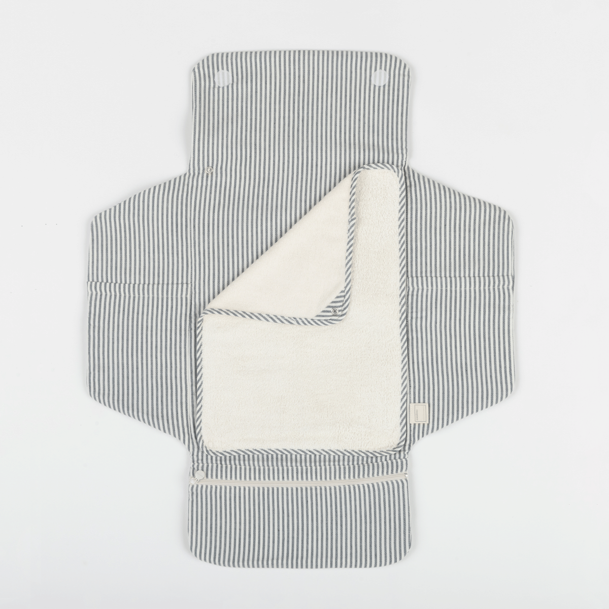Il nostro nuovo fasciatoio da passeggio è comodo, compatto e facile da piegare. È imbottito e ha un pad in spugna extra morbido che puoi rimuovere con clip che facilitano il lavaggio. Viene fornito con un pad aggiuntivo. Ha 3 tasche all'interno, una di esse con cerniera per conservare gli indispensabili per il cambio del pannolino. Puoi acquistare pad di ricambio.