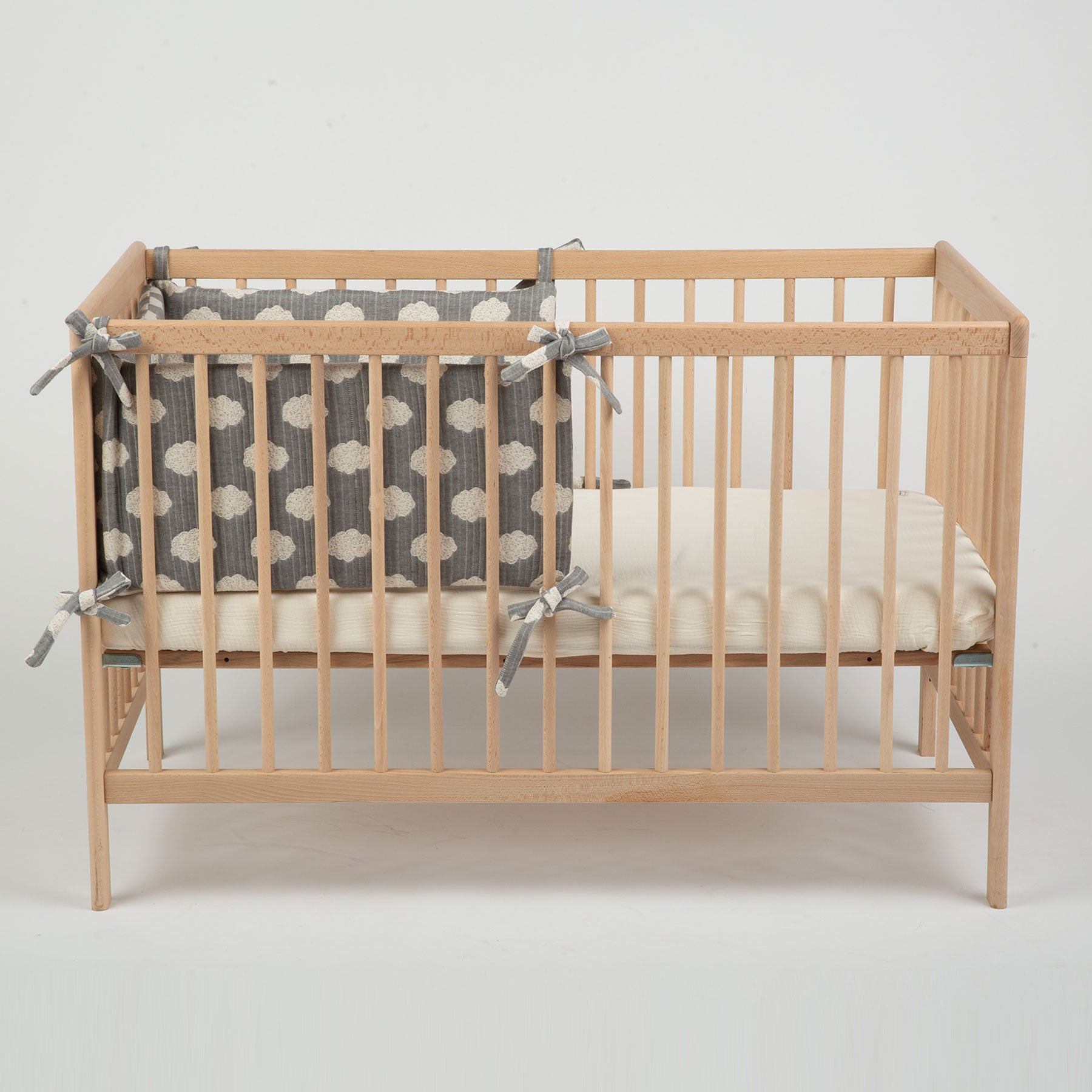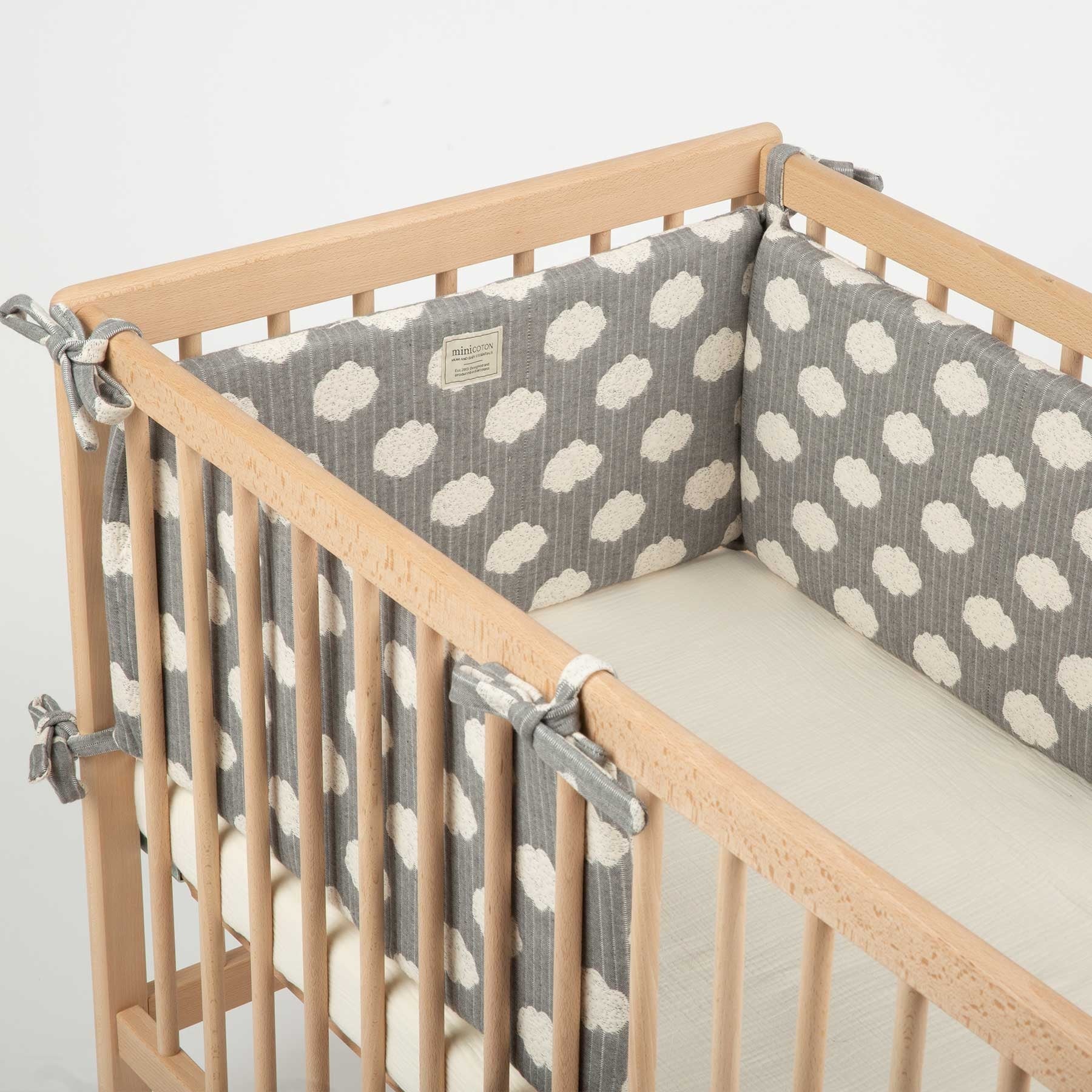 Questo paracolpi per culla “Half” è per culle da 120 x 60cm. Copre metà della culla nella parte della testata. Nel caso tu preferisca, puoi coprire tutto il perimetro della culla acquistando due unità.