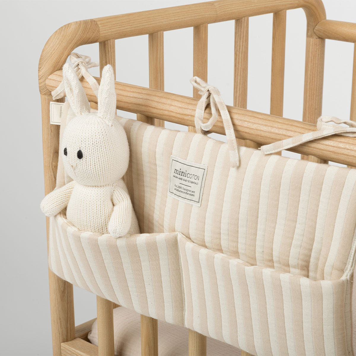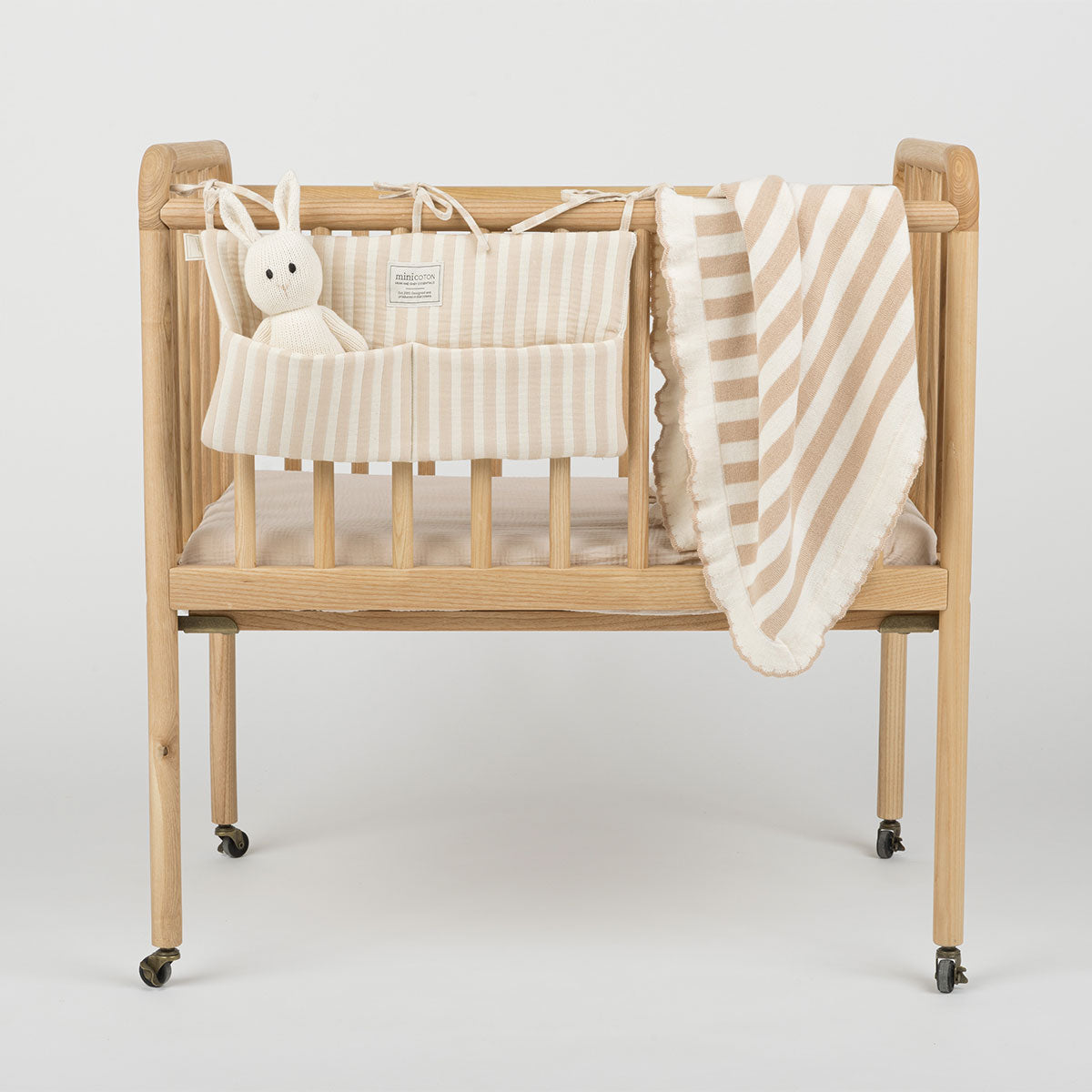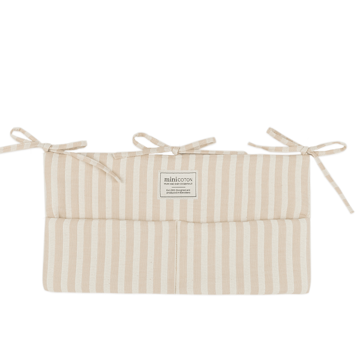Organizzatore per culle. Si lega con tre nastrini alla culla. Le due tasche ti permetteranno di avere a portata di mano le cose per il tuo bambino: ciucci, pannolini, pigiamini…