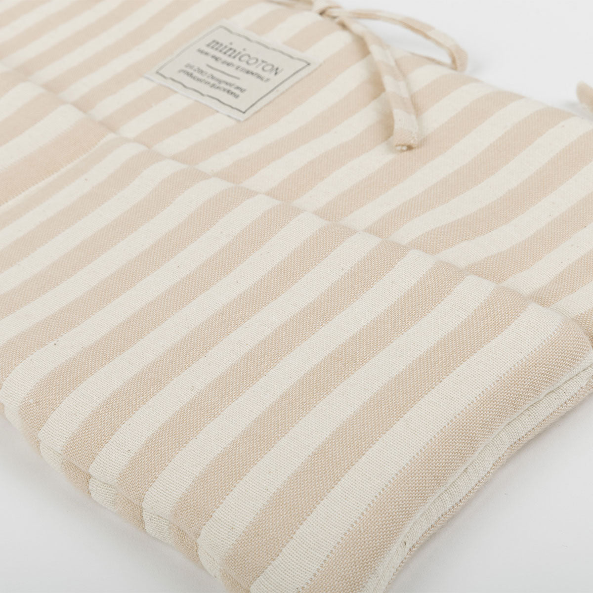Il tessuto è molto speciale, progettato per la nostra collezione Essentials. Si caratterizza per essere imbottito e presentare irregolarità nella tessitura che lo rendono disinvolto e con stile. 100% Oeko tex 100 e BCI.