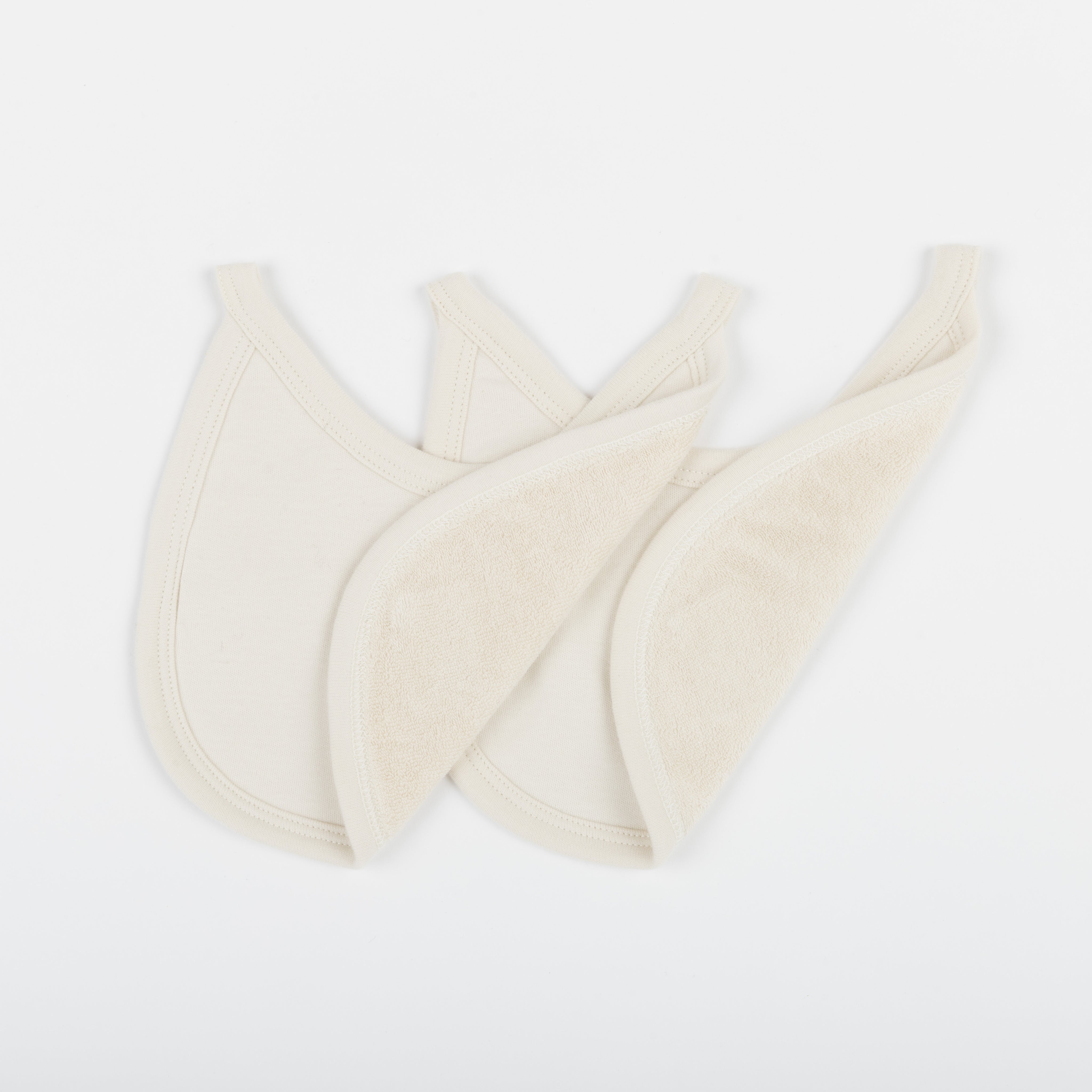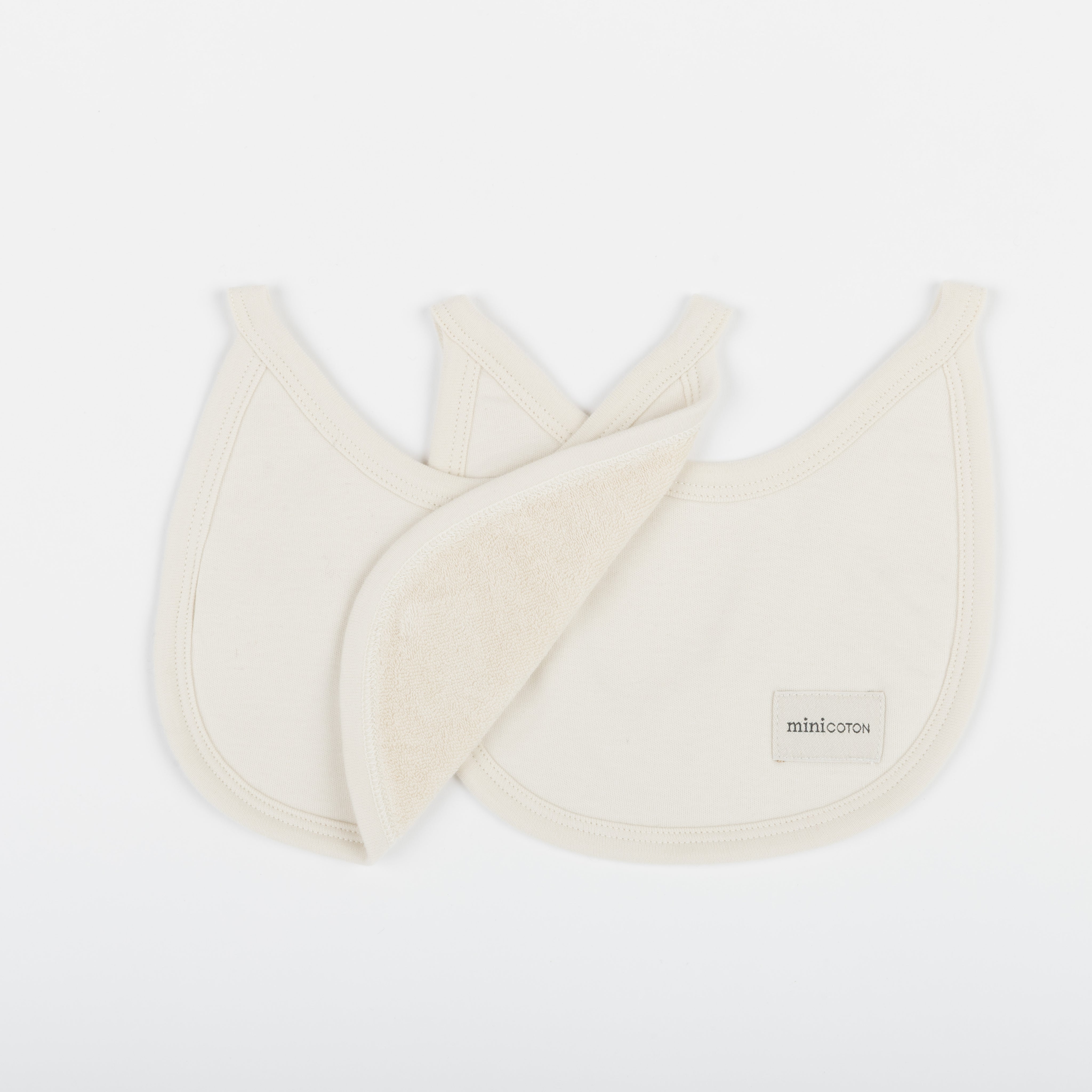Bavette della collezione NEWBORN di Minicoton. Realizzate in morbido punto di cotone. Sono reversibili: da un lato in punto di cotone e dall'altro in spugna. Si chiudono con nastri.
