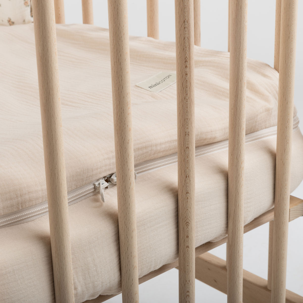 Compatibile con lettini da 120 x 60 cm. In tessuto di bambula 100% cotone organico.