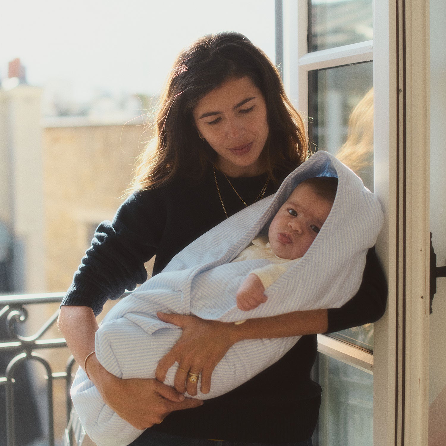 Sacco per la navicella e la carrozzina del passeggino, ideale per i primi mesi in cui il neonato sta sdraiato. È morbido e presenta tre bottoni per regolare la chiusura. I bottoni sono realizzati anch’essi in cotone.