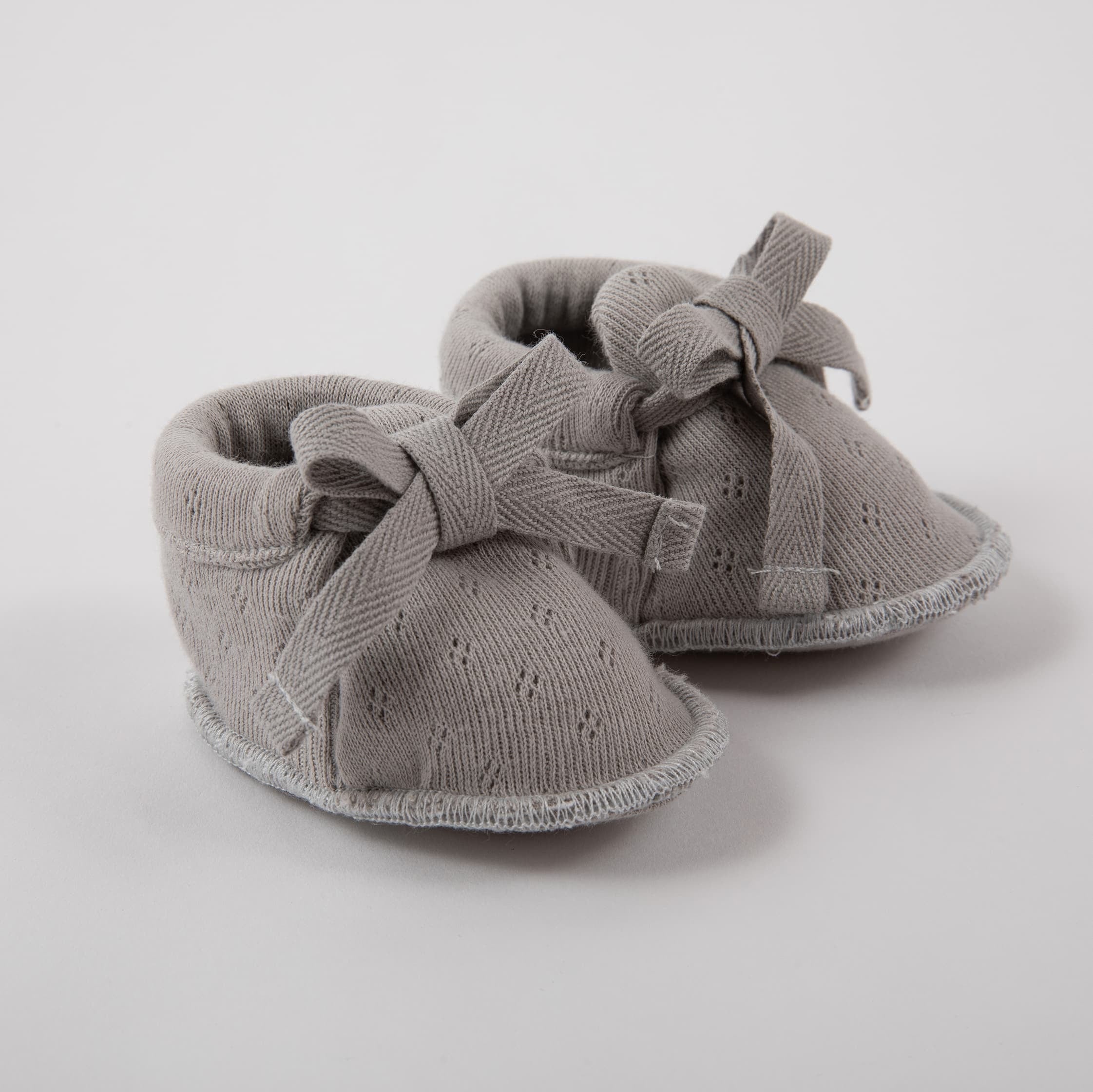 Scarpine morbide per completare i look del neonato. Sono morbide e soffici.