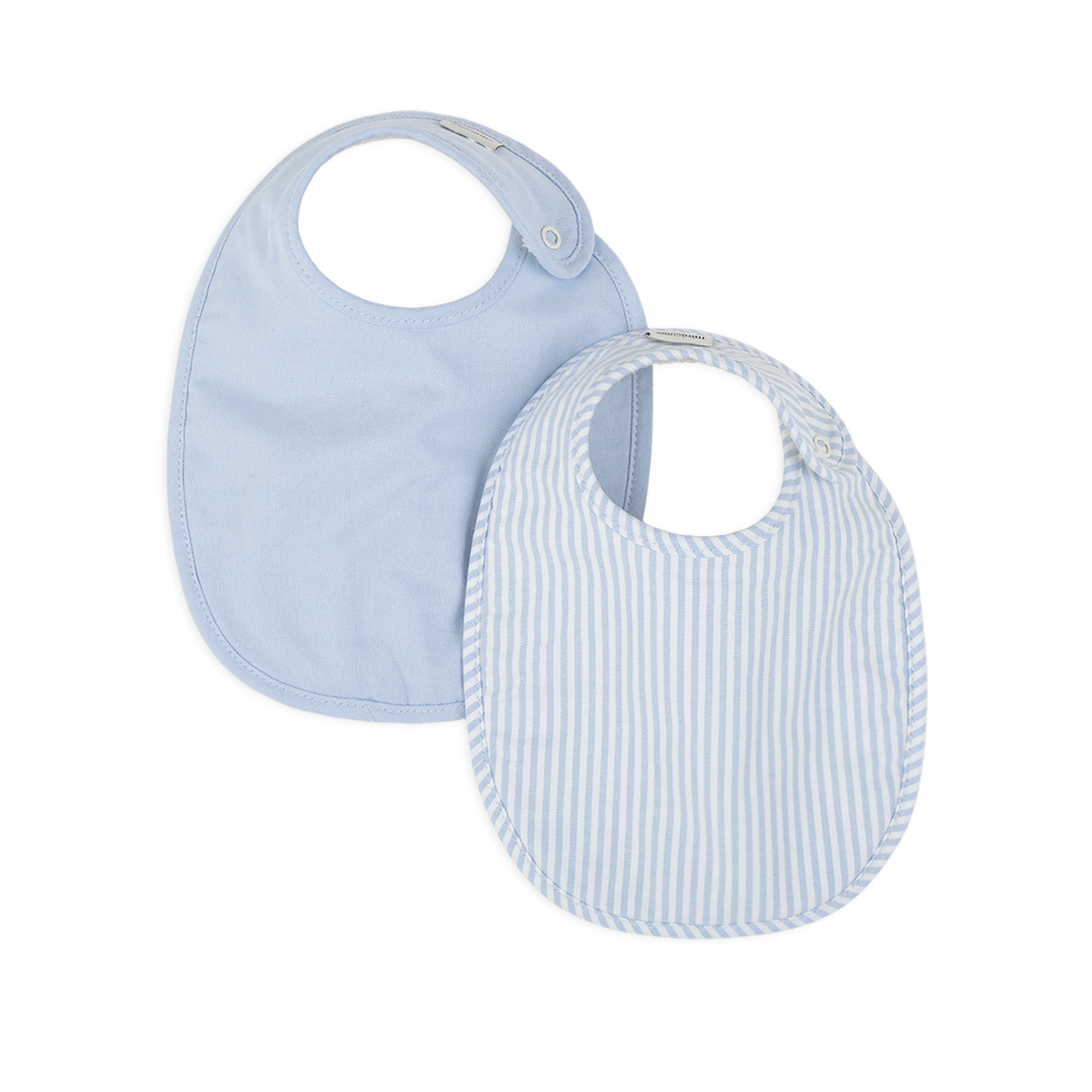 Confezione di bavaglini, contiene 2 pezzi: uno in tinta unita azzurra e uno a righe.